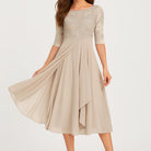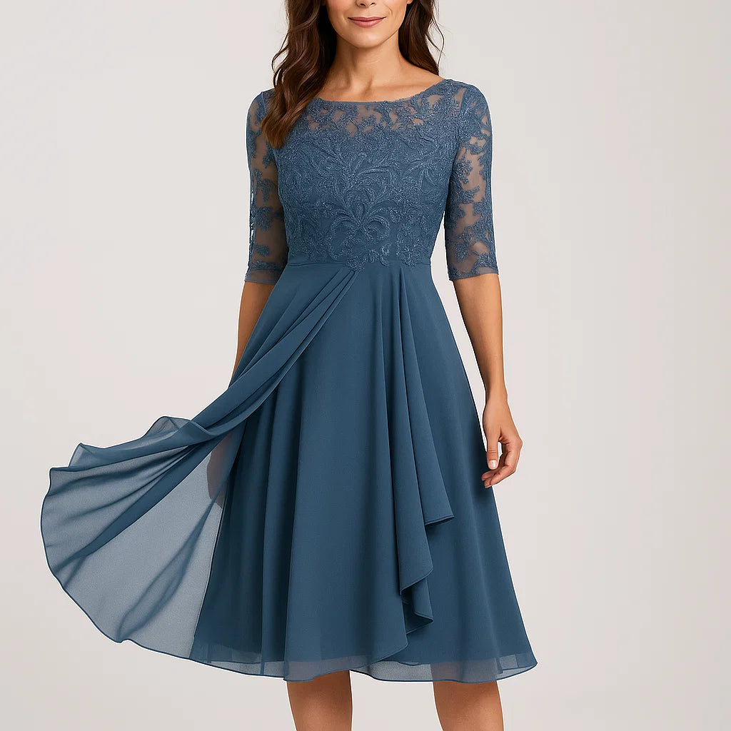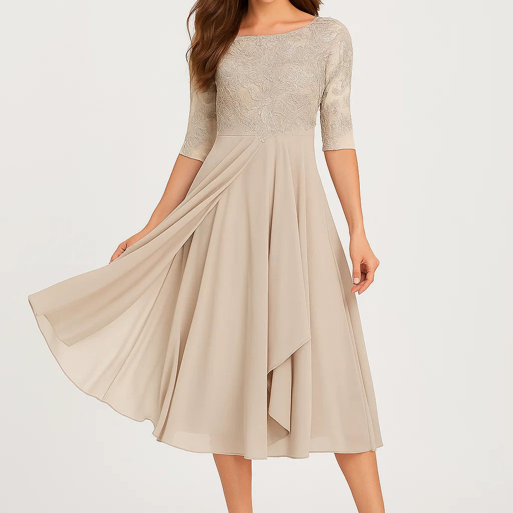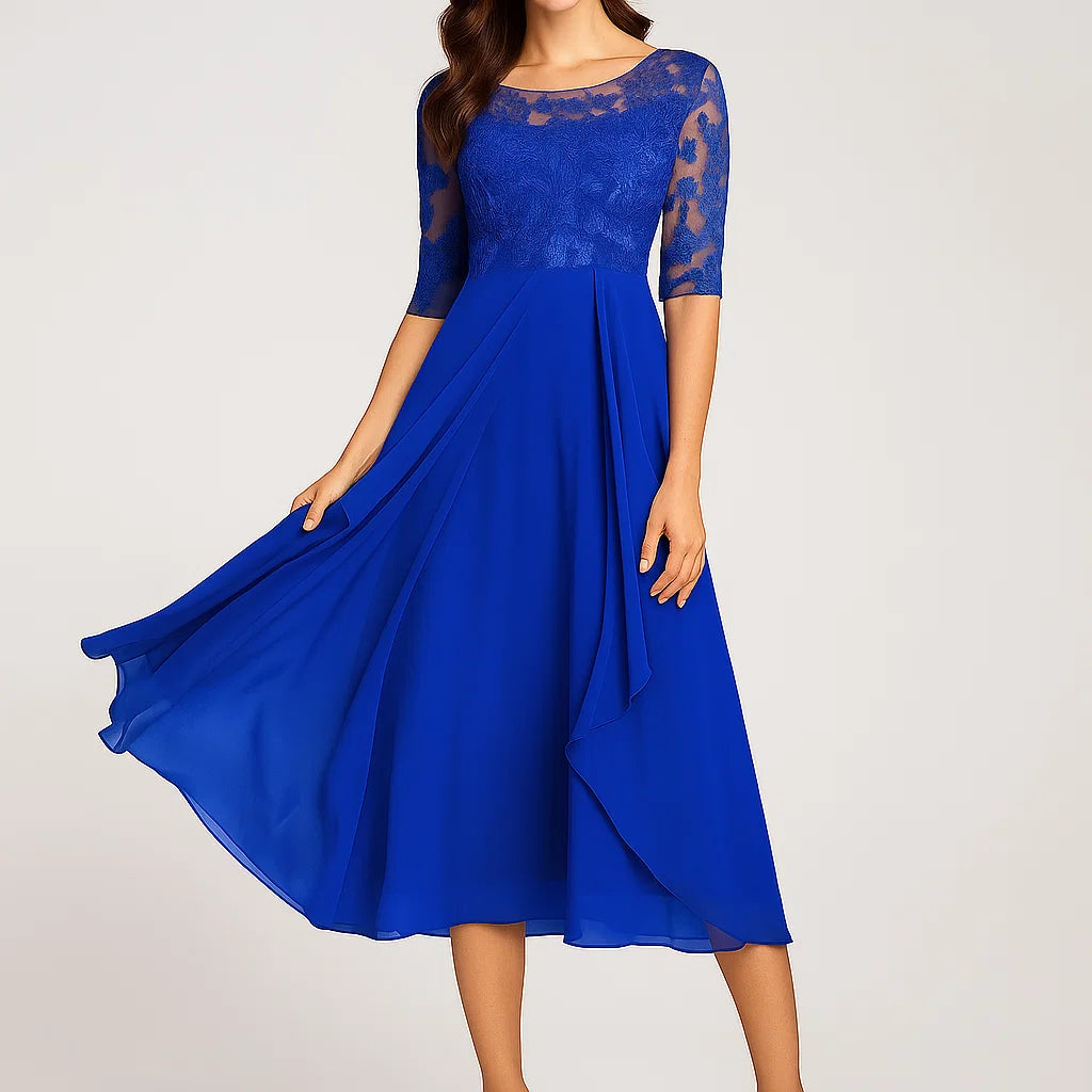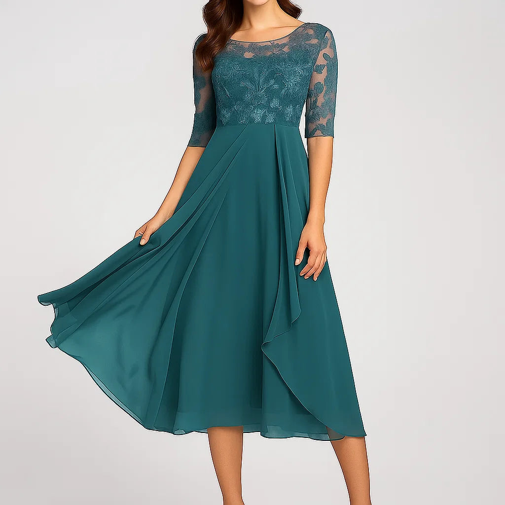 Vestido midi fluido com mangas três quartos para senhora