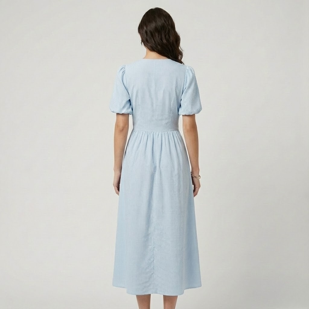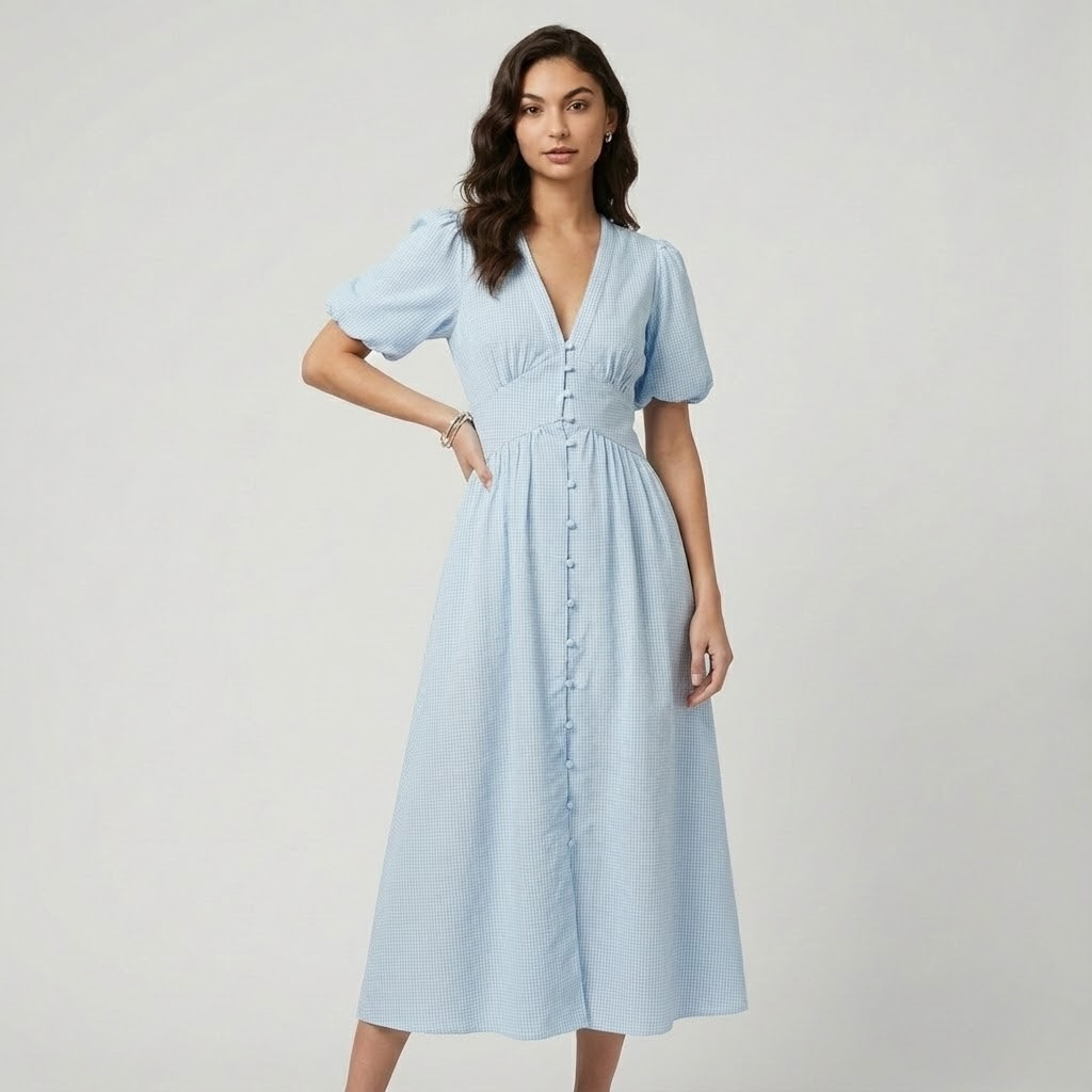 Vestido midi fluido em algodão suave | Cintura marcada | Elegância intemporal