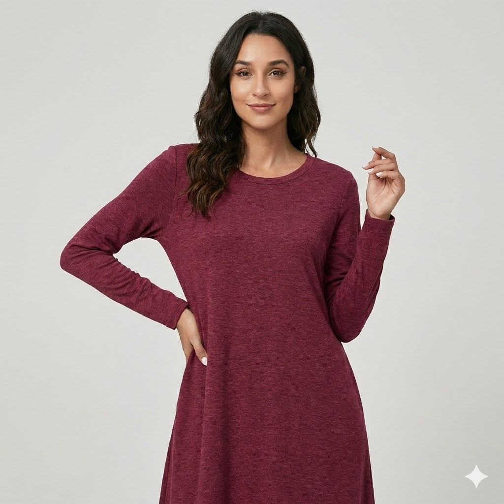 Vestido midi fluido em algodão suave | Corte solto | Conforto elegante para o dia-a-dia