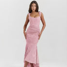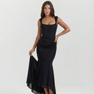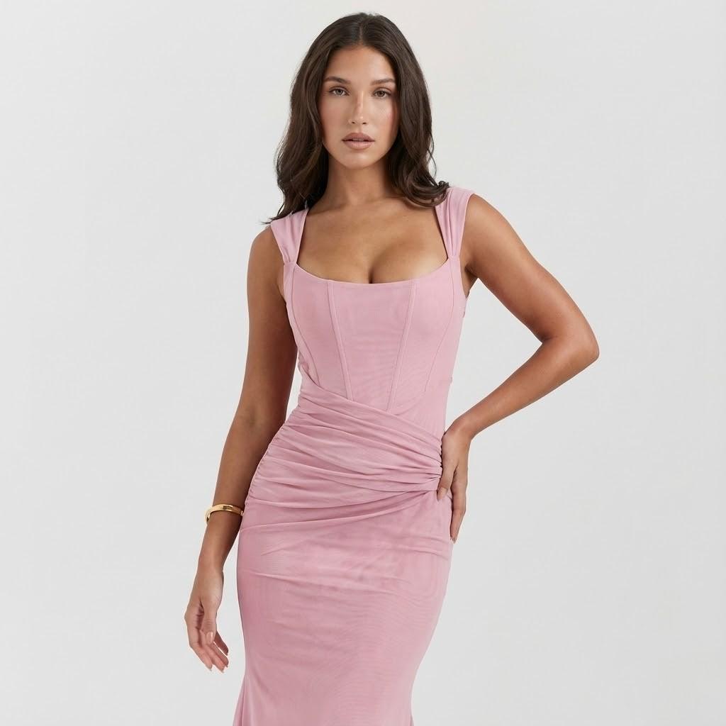 Este vestido midi destaca-se pelo corte cintado que valoriza a silhueta de forma feminina e equilibrada. O comprimento assimétrico cria fluidez e leveza no movimento, acrescentando um toque sofisticado ao visual. As alças delicadas e o decote estruturado conferem elegância discreta, ideal para ocasiões especiais ou eventos de verão. O tecido leve proporciona conforto ao longo do dia, mantendo um cair elegante e natural. Uma peça pensada para quem procura roupa feminina elegante com presença subtil.