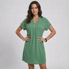 Vestido mini fluido em malha suave | Corte descontraído | Botões frontais para uso diário