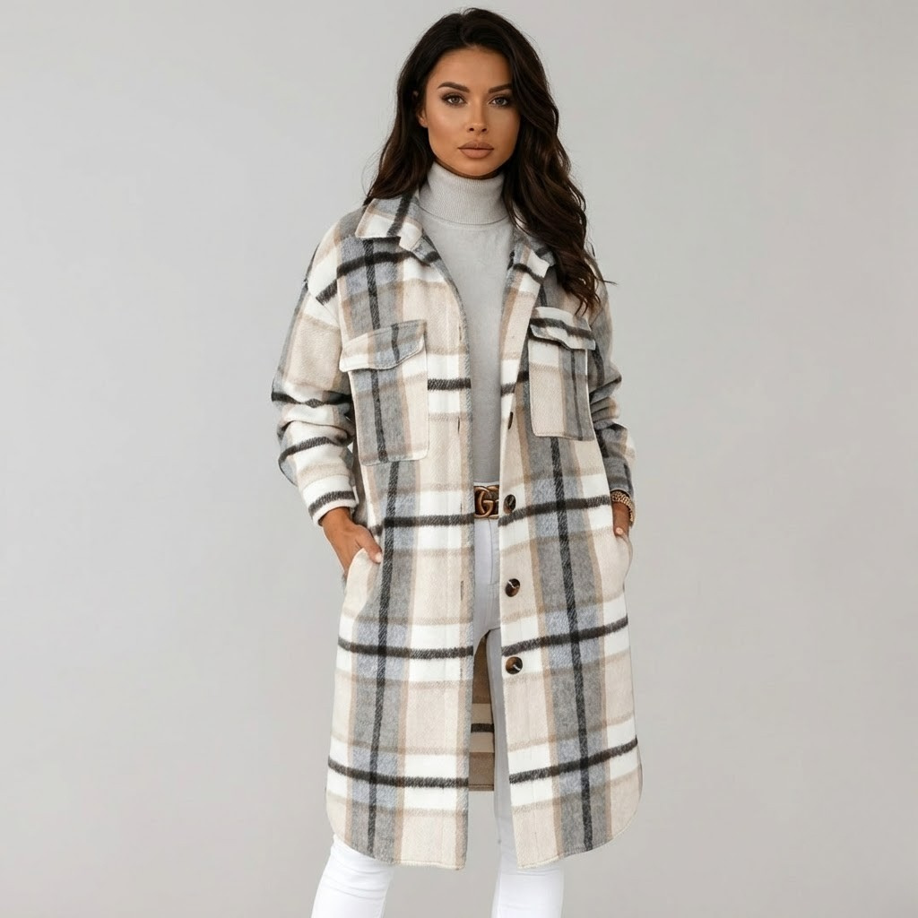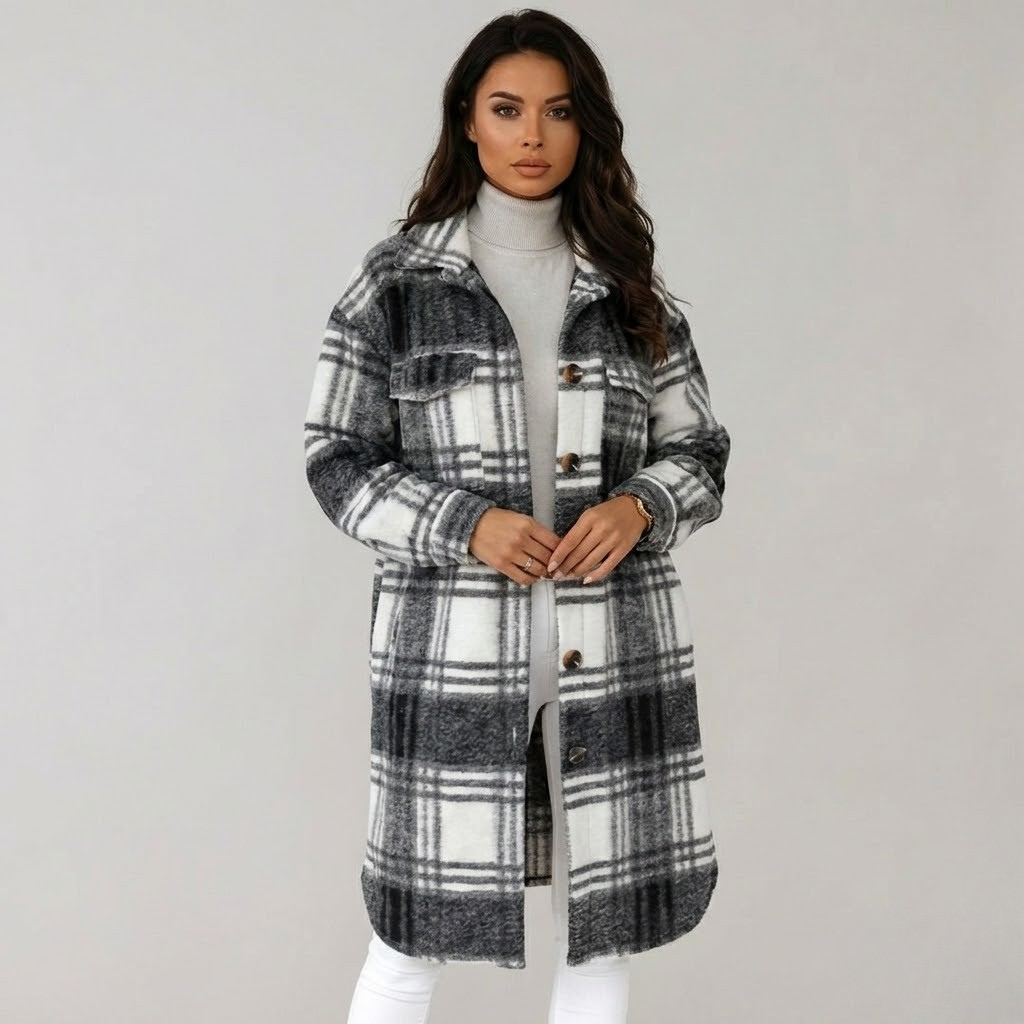 Casaco xadrez em mistura de lã | Corte direito | Estilo casual elegante