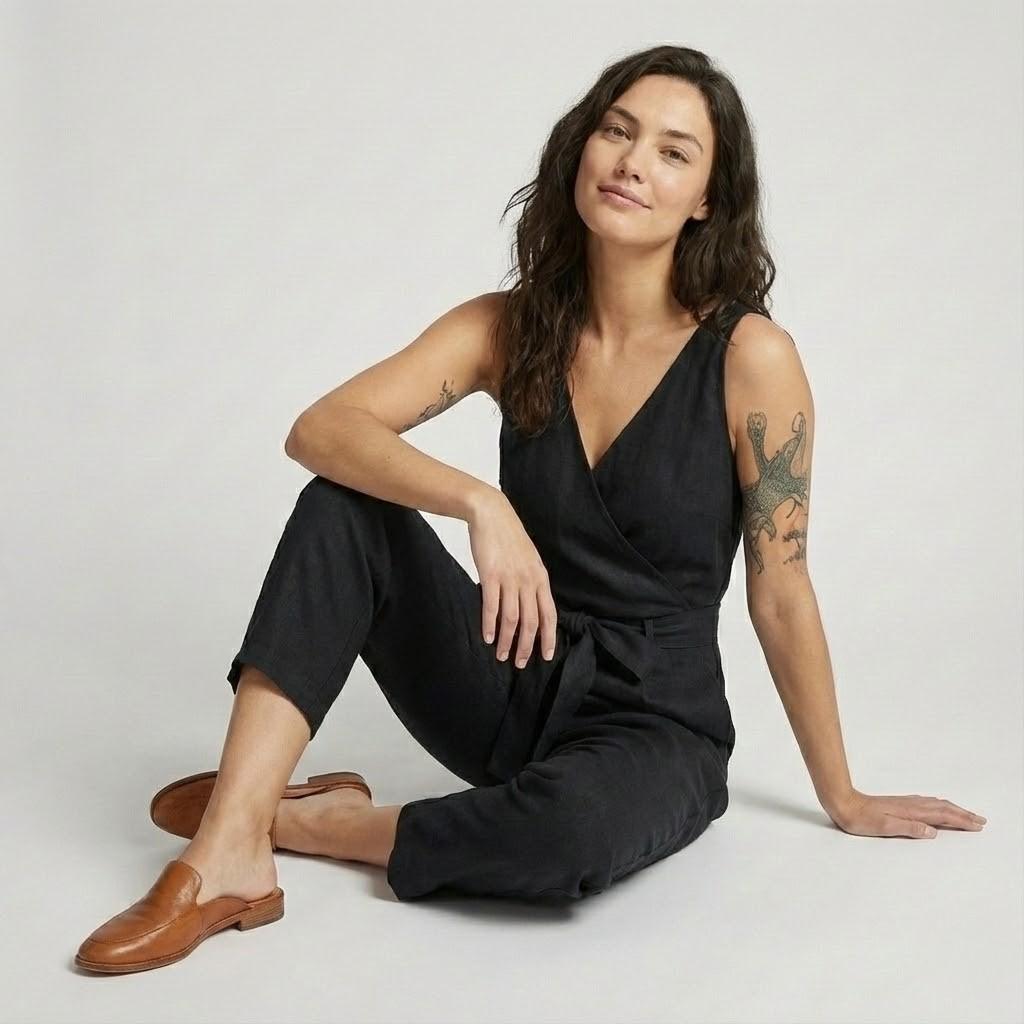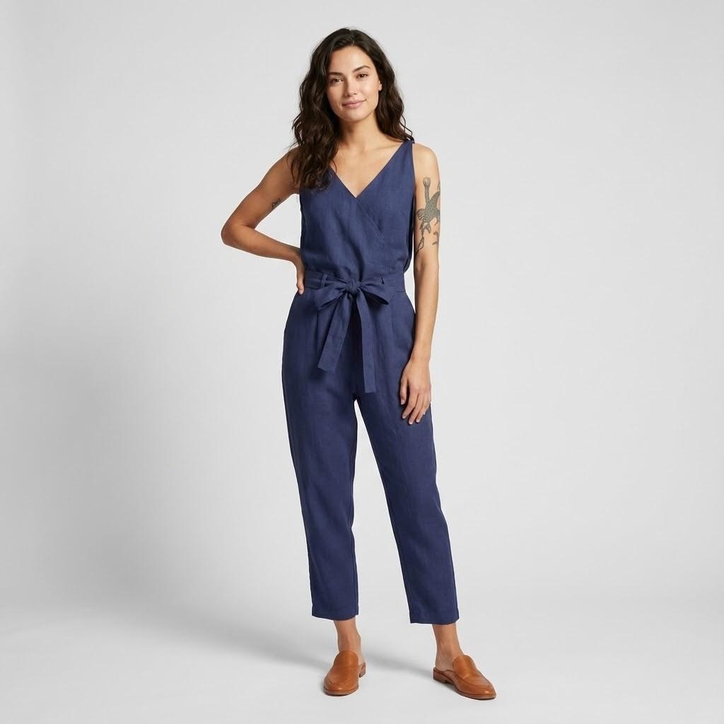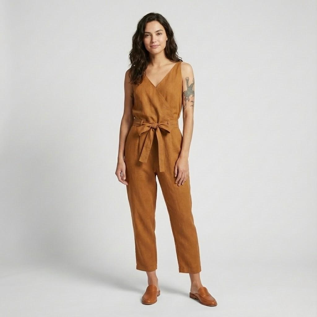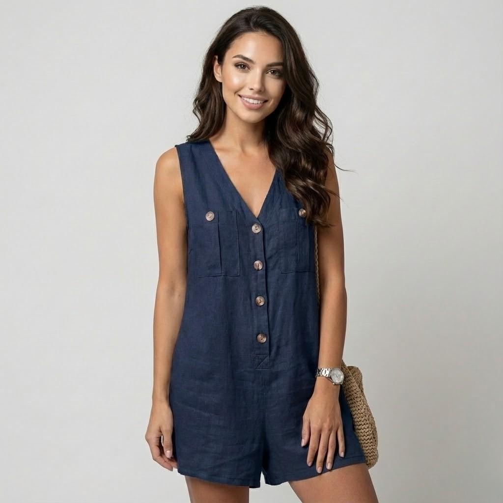 Macacão feminino em algodão e linho | Corte fluido | Estilo casual de verão