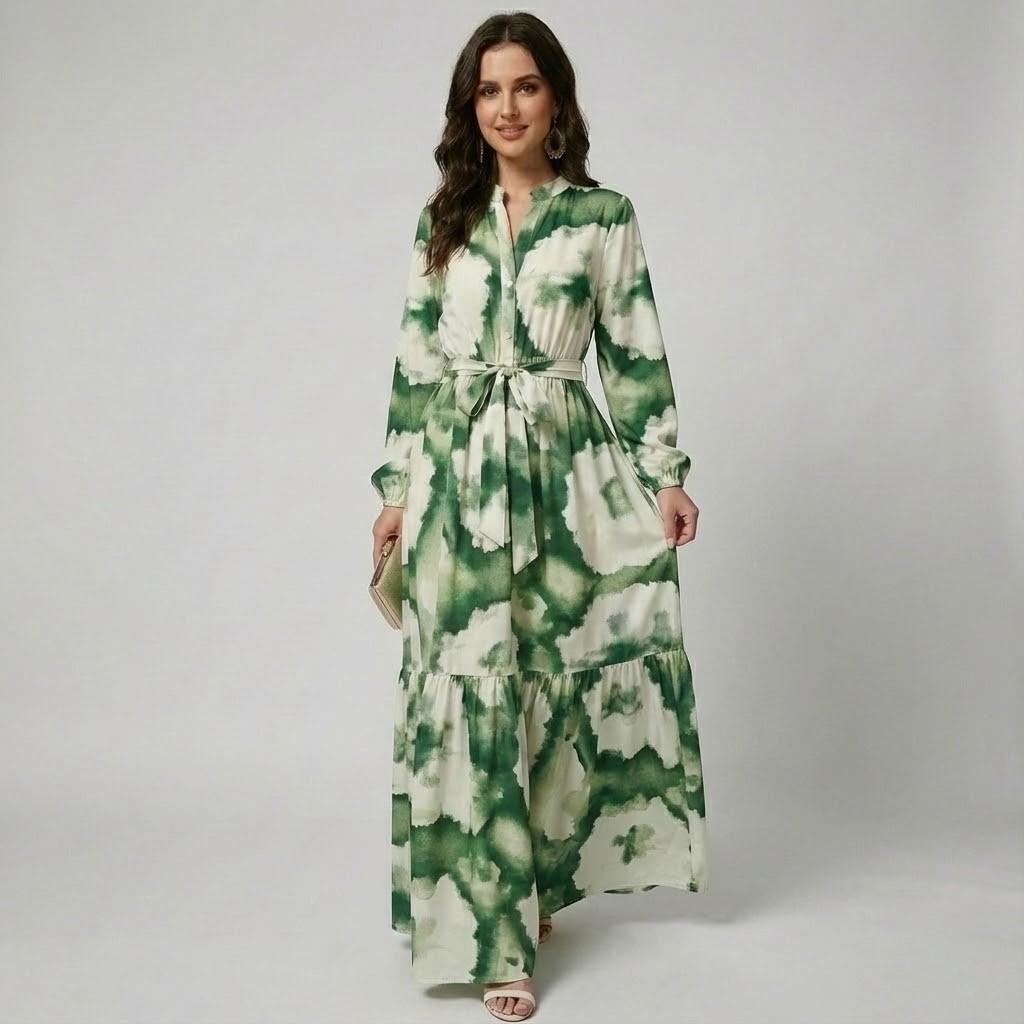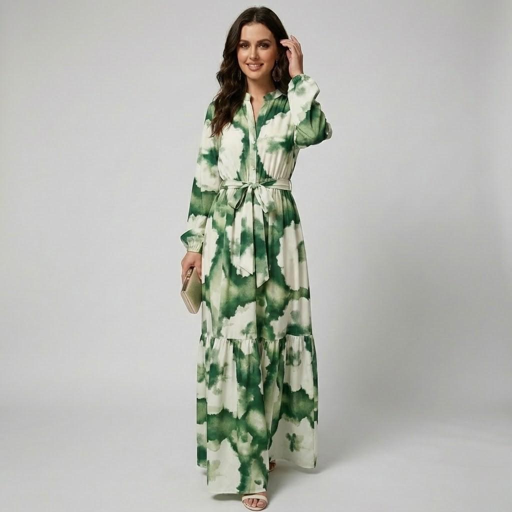 Vestido midi fluido em mistura de algodão | Cintura ajustável | Estilo casual elegante