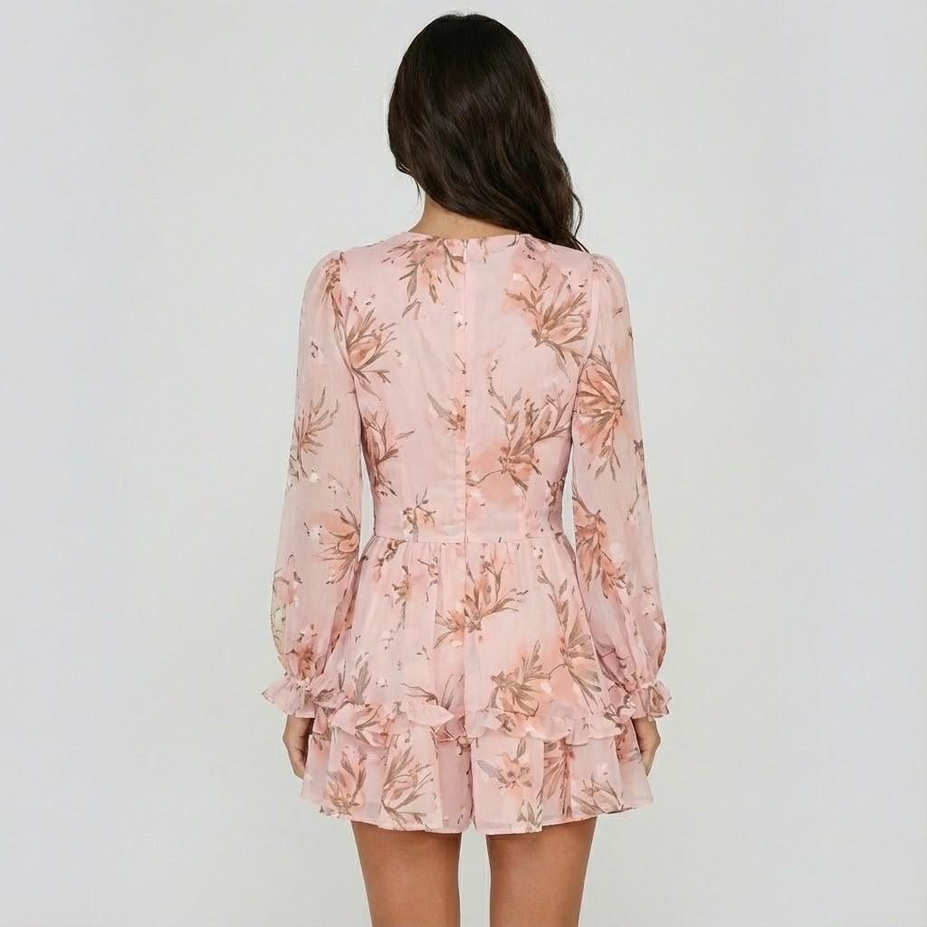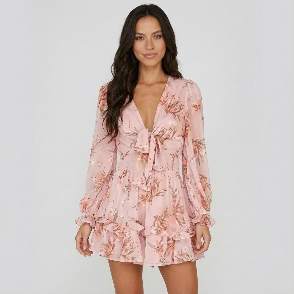 Vestido curto fluido em mistura de viscose | Cintura ajustável | Estampado floral delicado