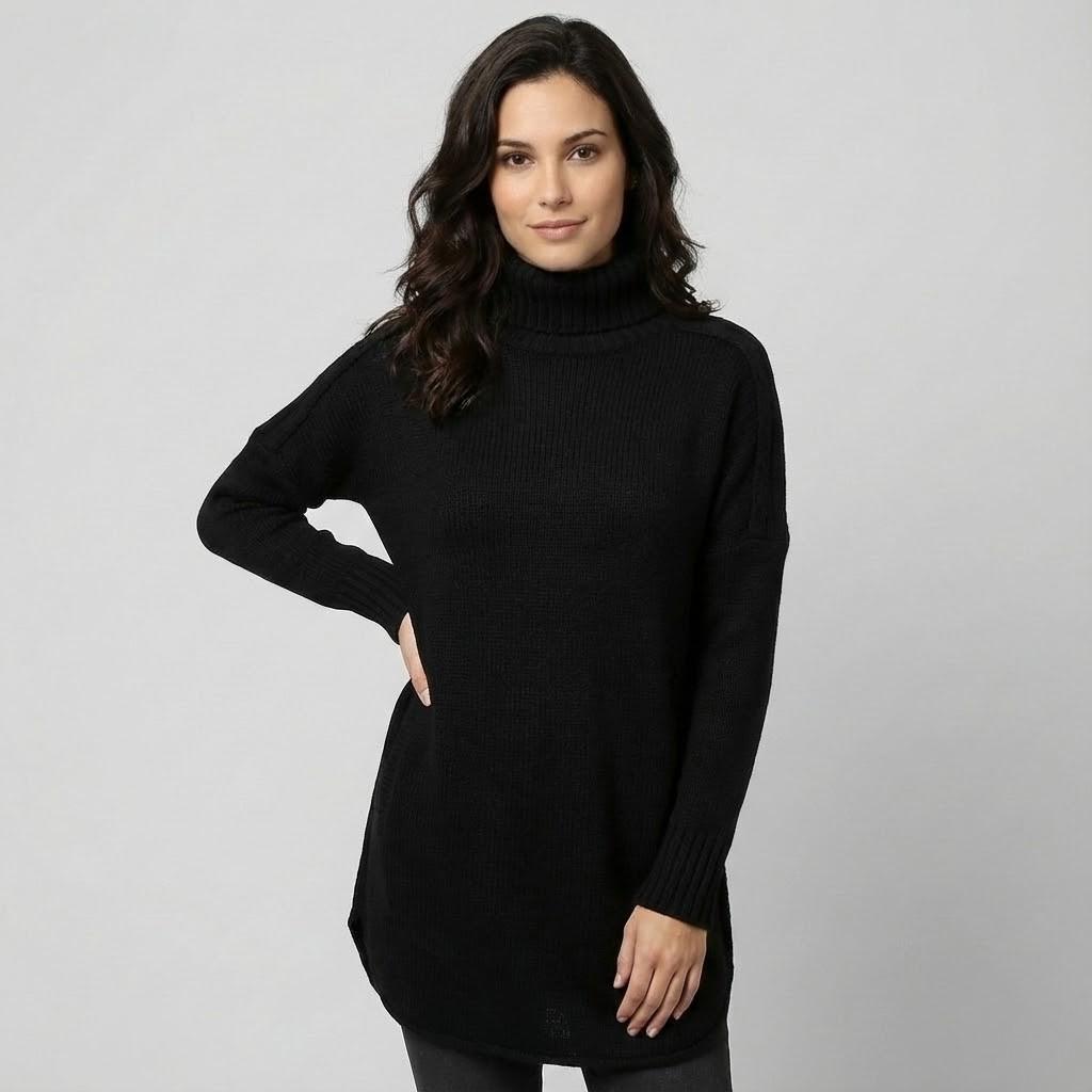 Camisola comprida de malha aconchegante em mistura de lã | Corte relaxado | Gola alta envolvente