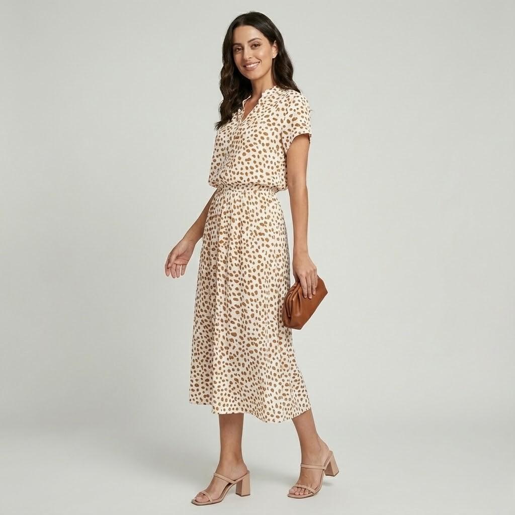 Vestido midi fluido em algodão leve | Corte elegante | Estampa delicada para o dia-a-dia