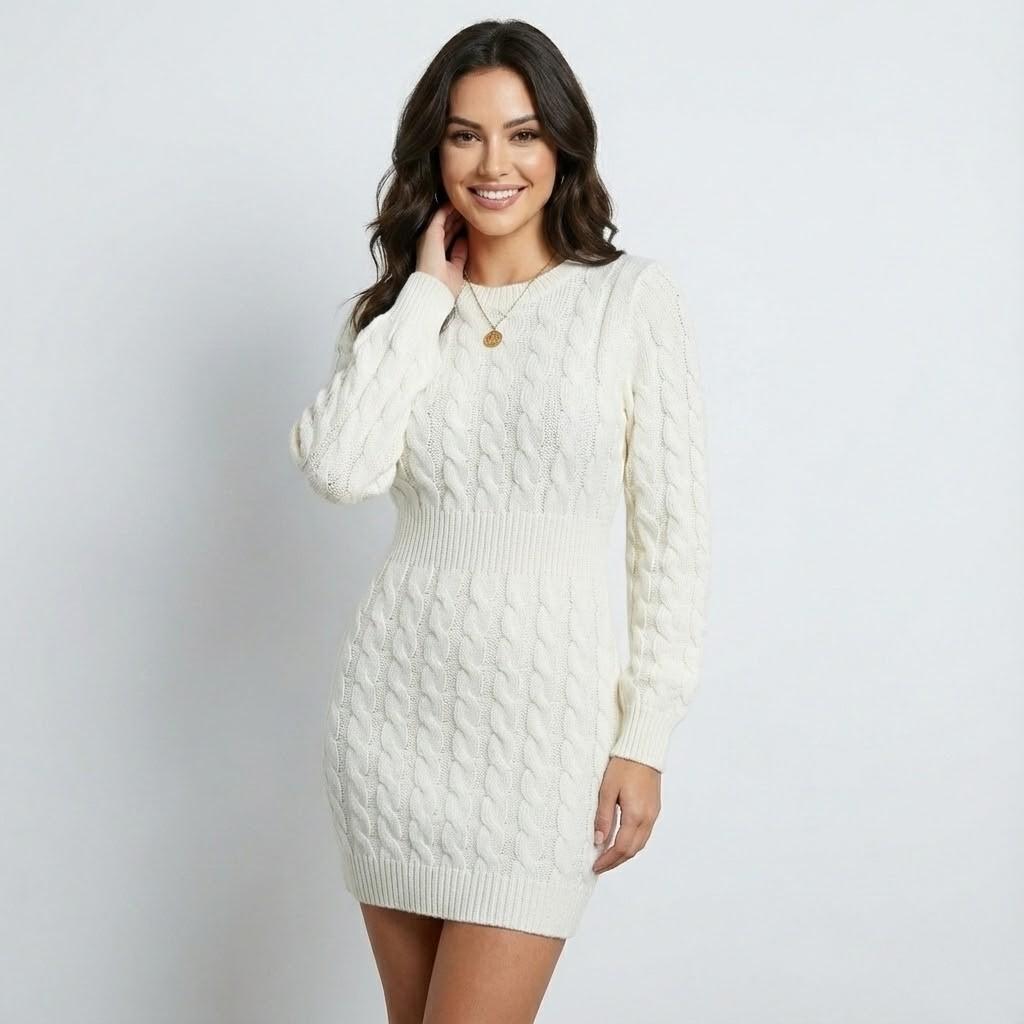 Vestido de malha aconchegante em mistura de lã | Corte relaxado | Gola alta envolvente