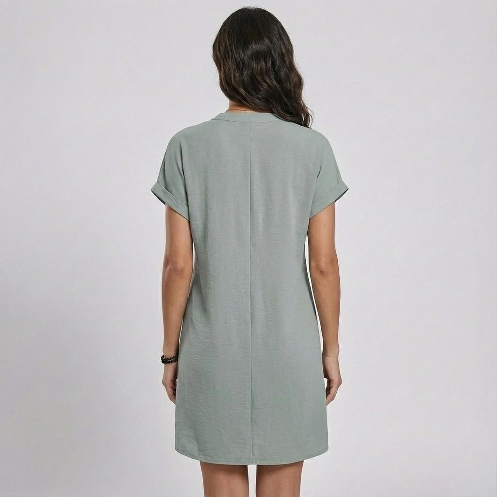 Vestido mini fluido em malha suave | Corte descontraído | Botões frontais para uso diário