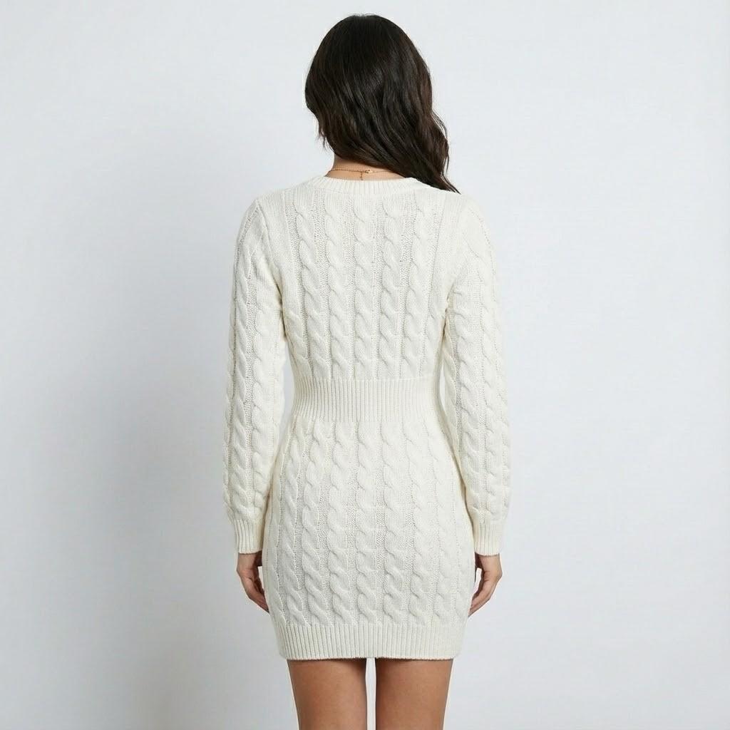 Vestido curto cintado com brilho subtil | Corte justo | Decote em V profundo