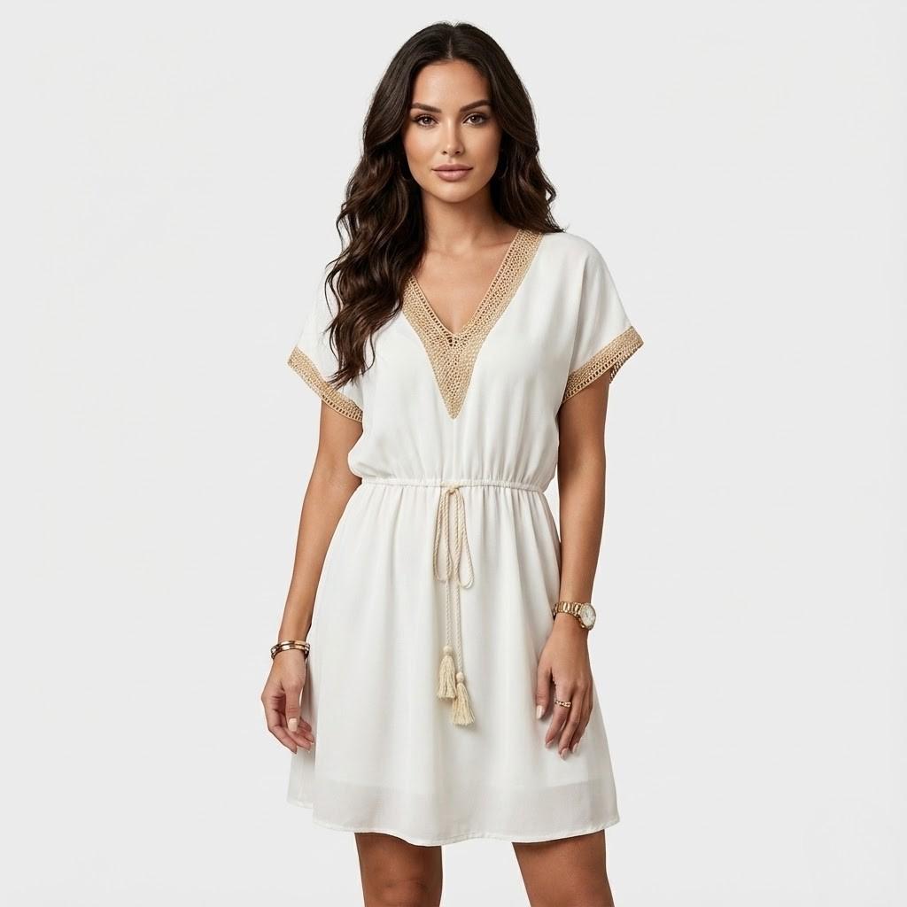 Vestido elegante em renda delicada | Cintura marcada | Silhueta sofisticada de verão