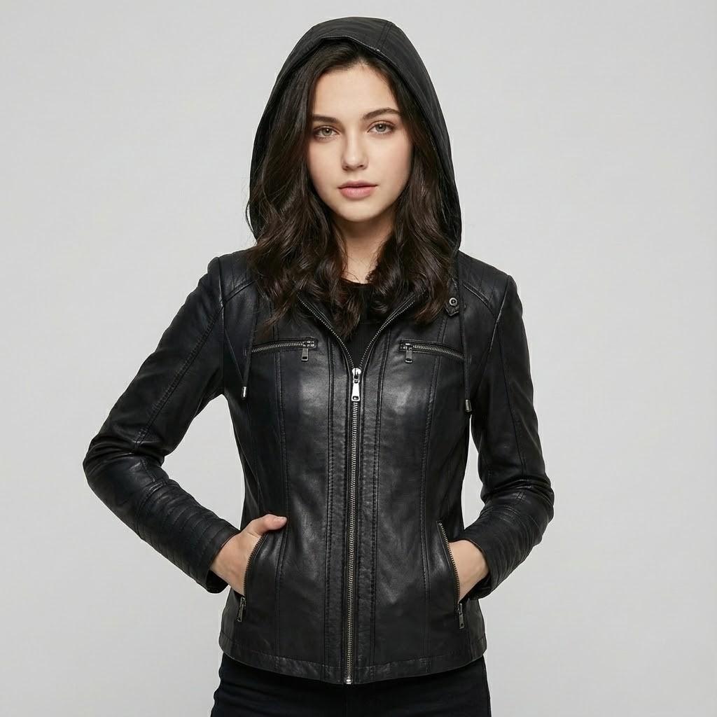 Jaqueta urbana em pele sintética | Corte cintado | Capuz funcional