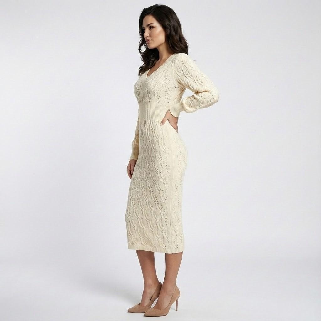 Vestido de malha elegante com decote em V | Corte cintado | Sofisticação intemporal