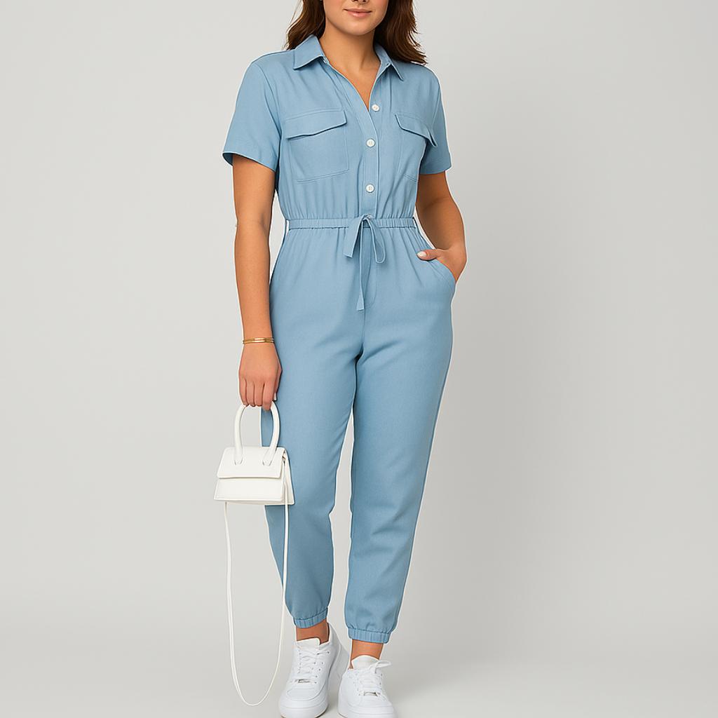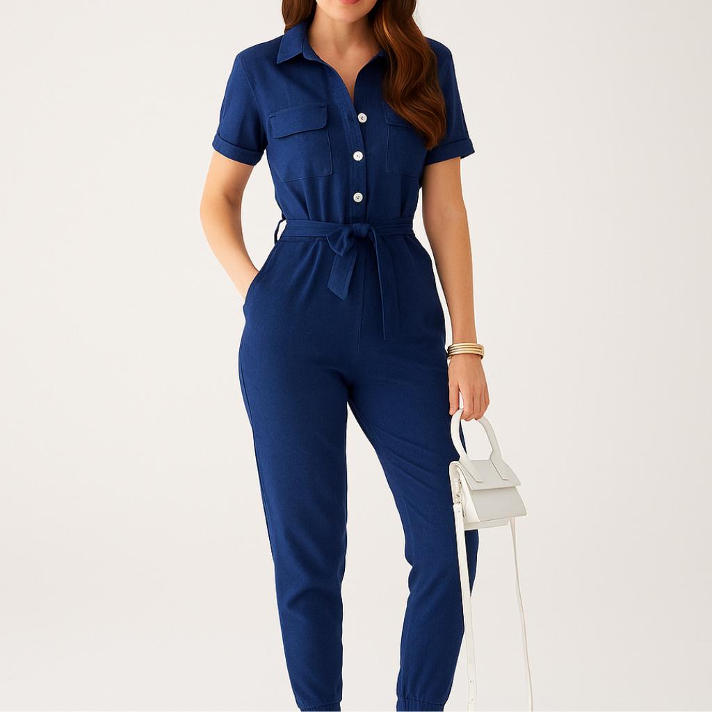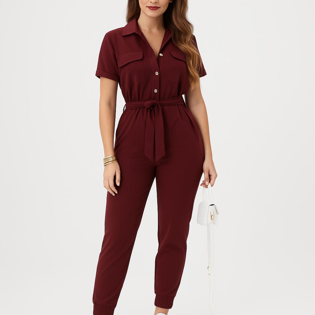Macacão Feminino Elegante com Cintura Ajustável e Detalhes com Folhos