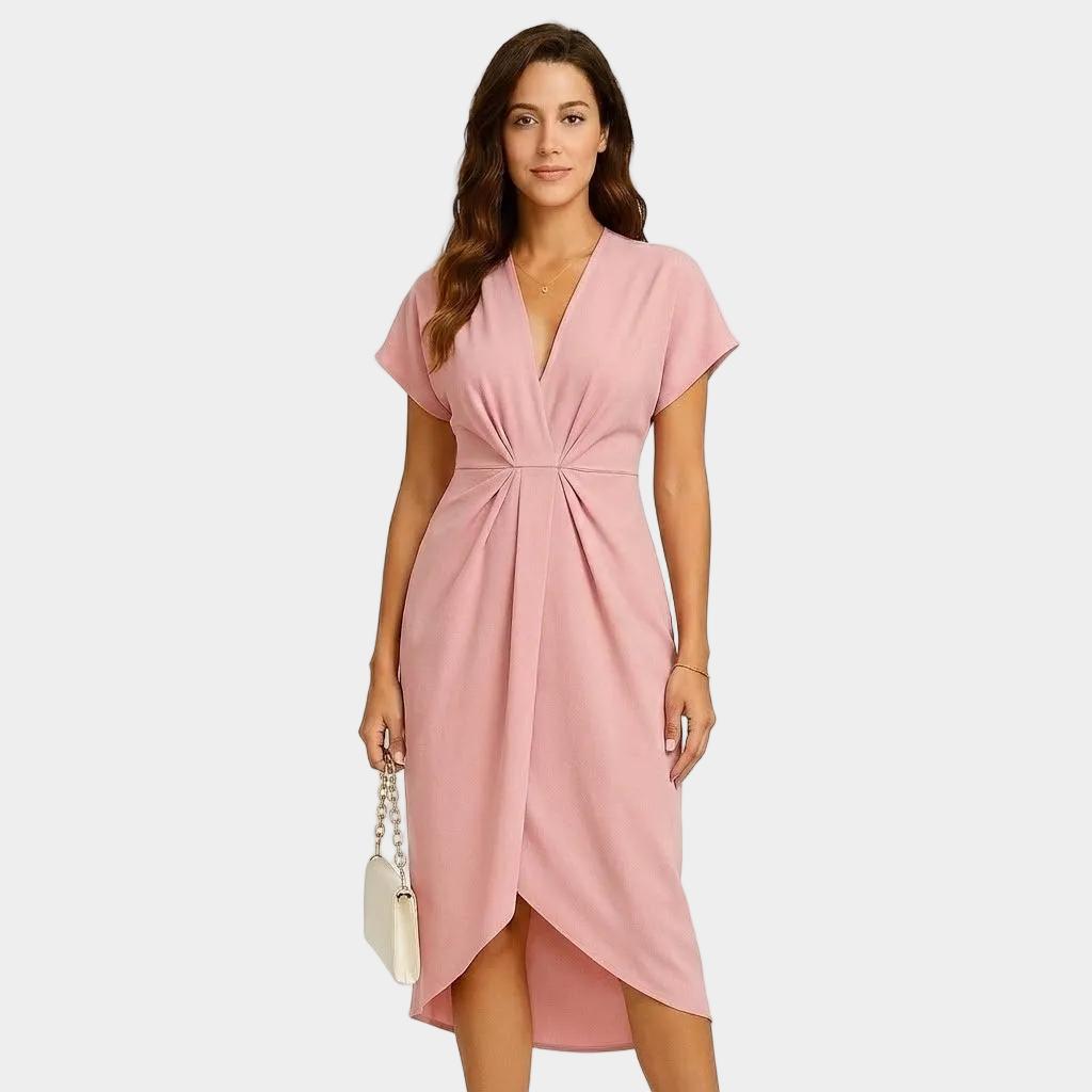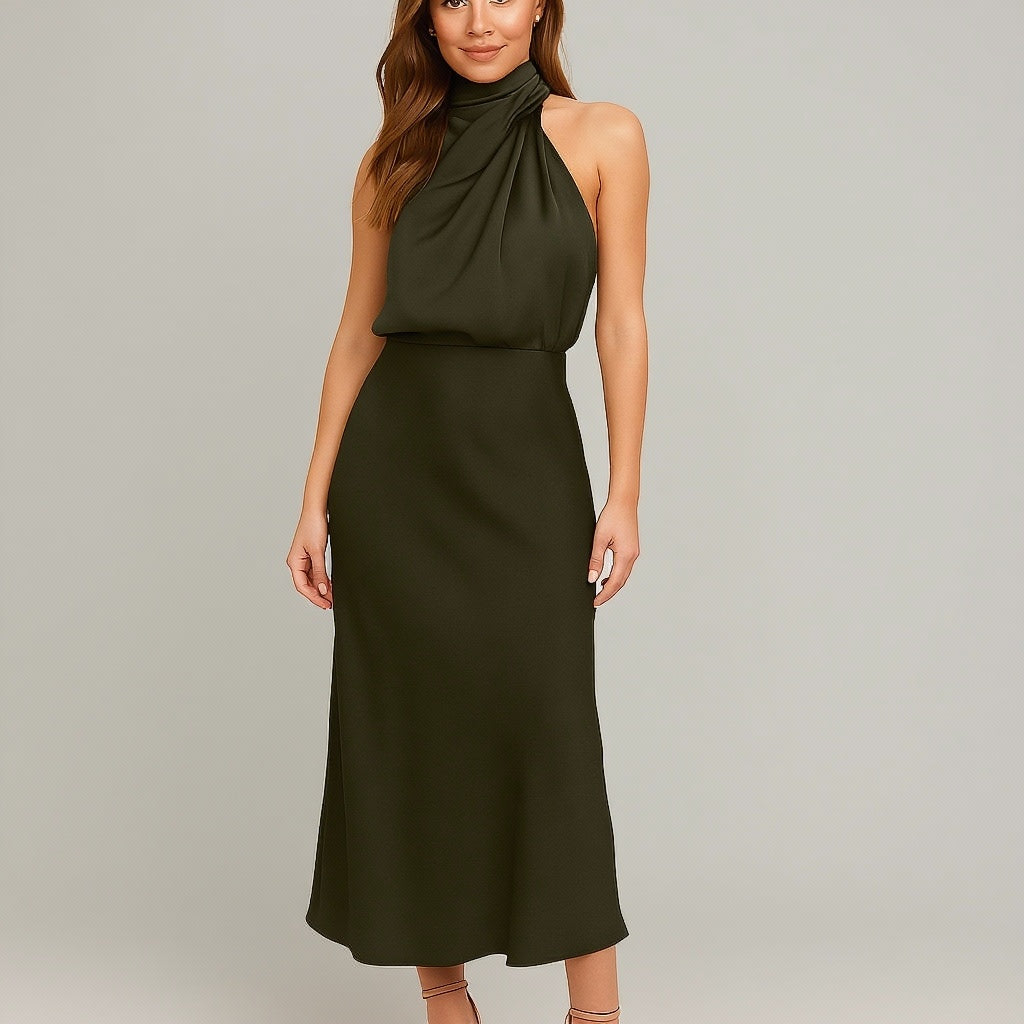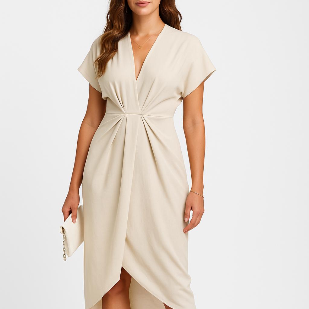 Vestido assimétrico elegante em tecido fluido | Corte ajustado | Silhueta feminina refinada