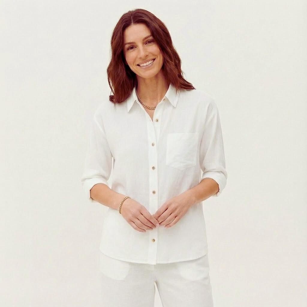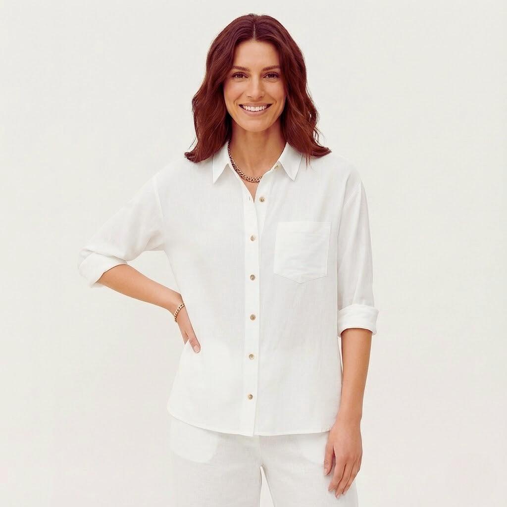 Camisa Feminina de Algodão às Riscas com Corte Relaxado