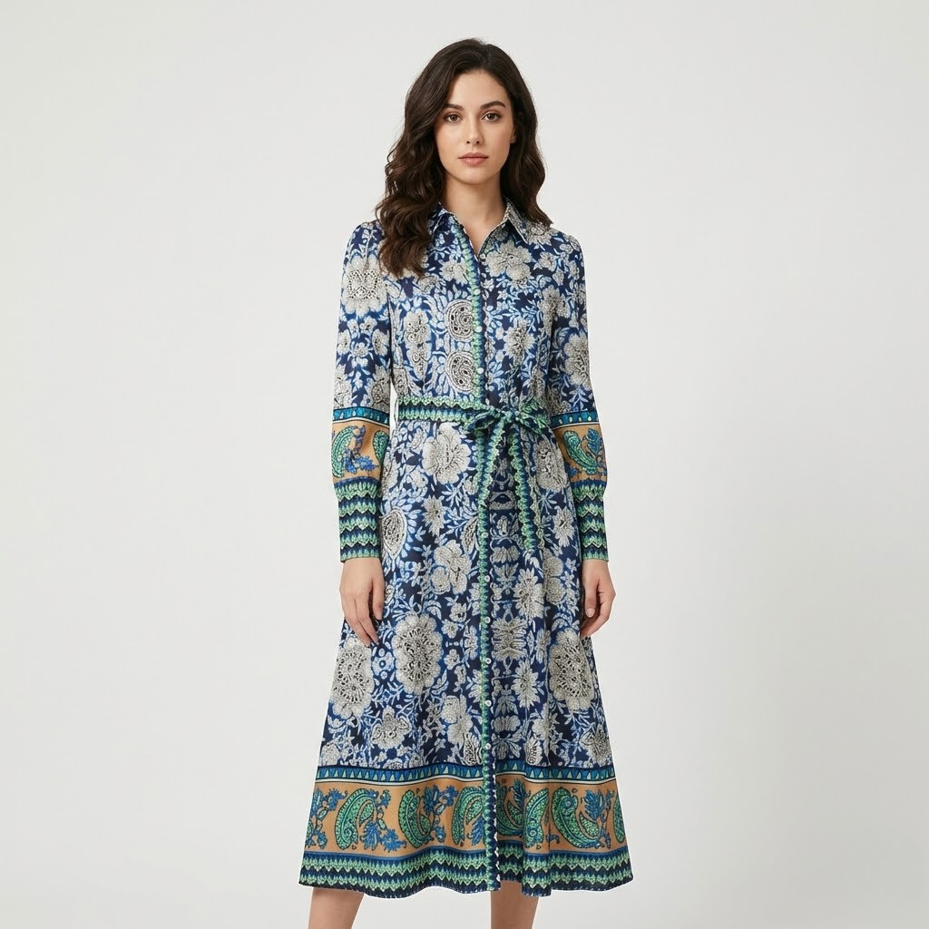 Vestido longo estampado em algodão natural | Corte fluido | Elegância boémia