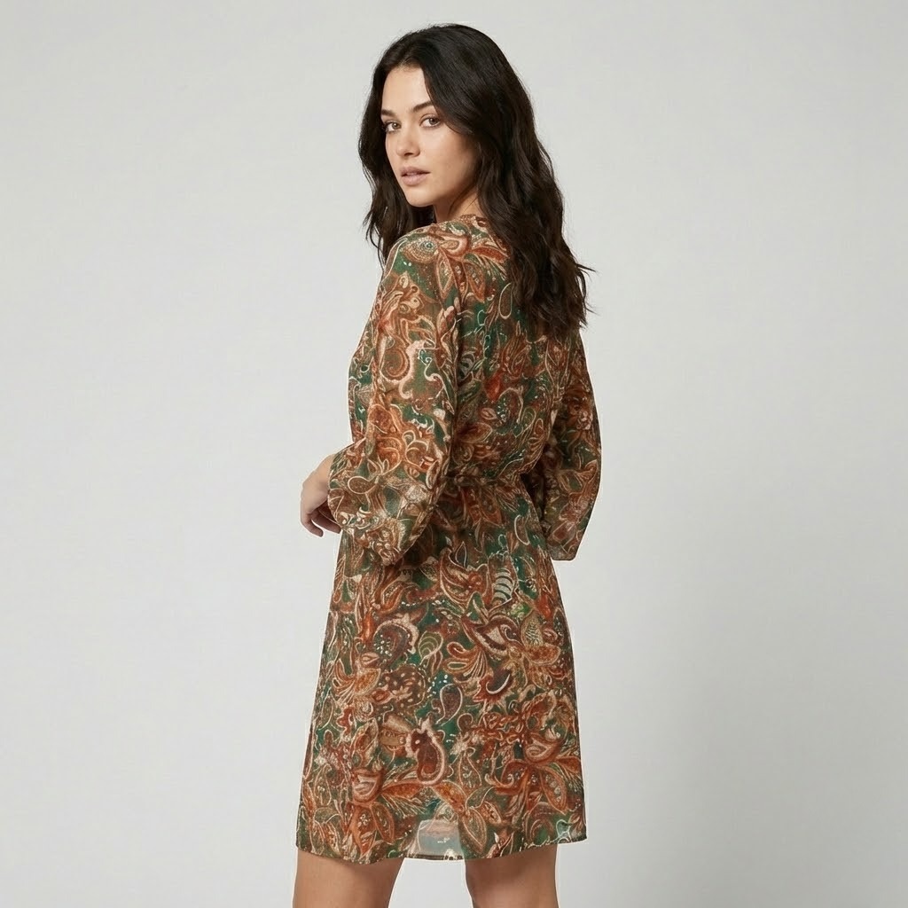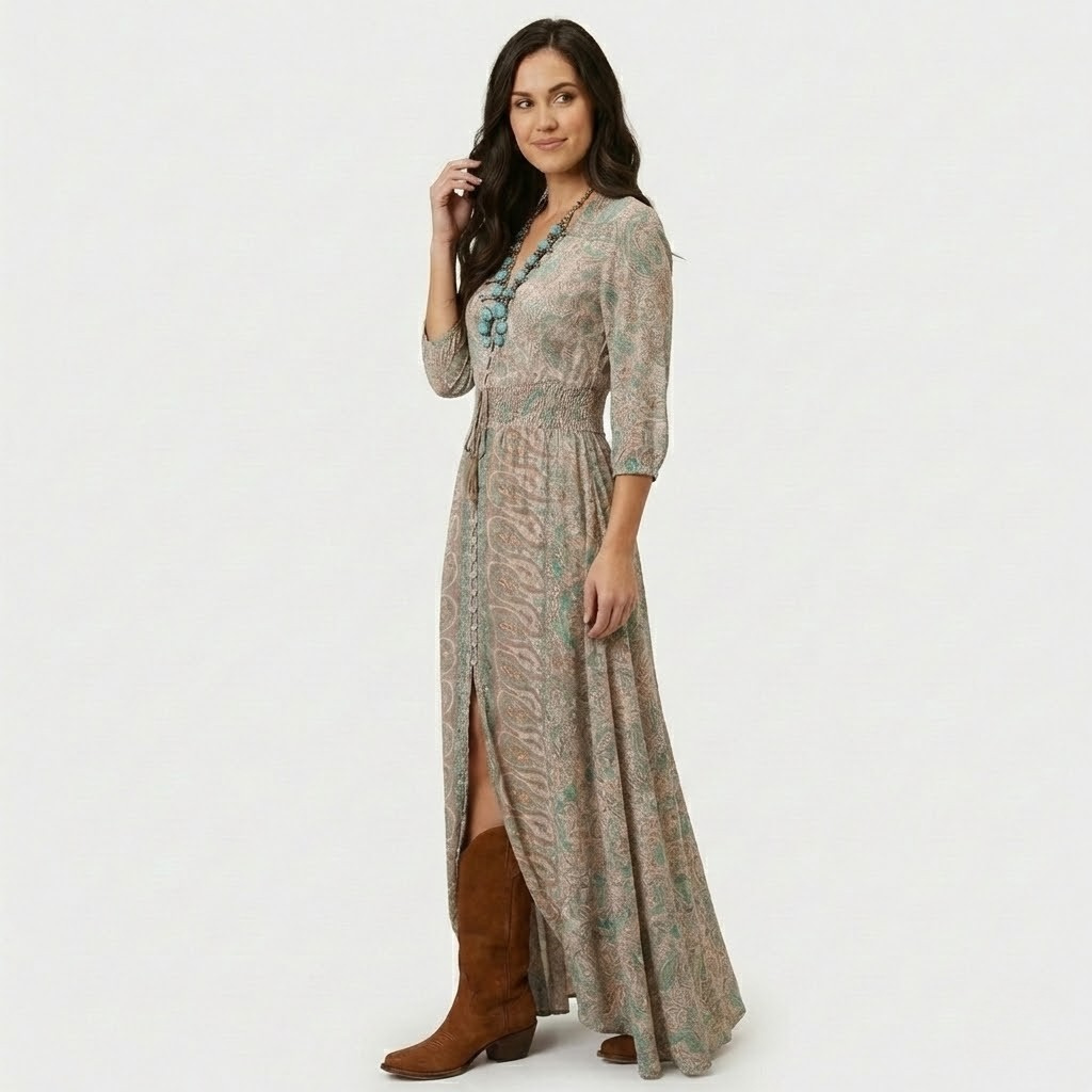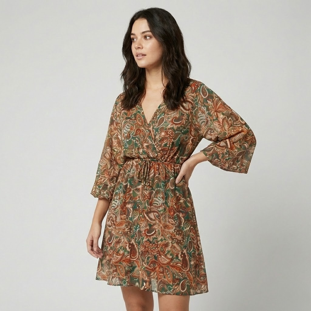 Vestido boémio fluido em mistura de viscose | Cintura ajustável | Movimento natural com charme artesanal