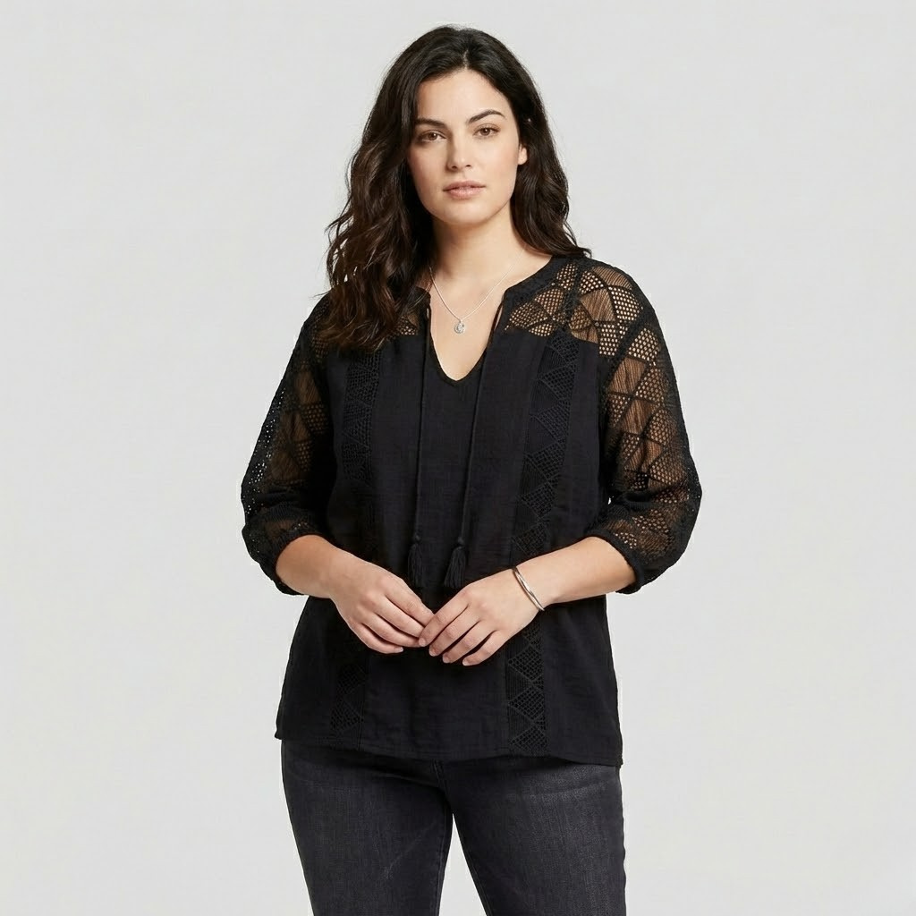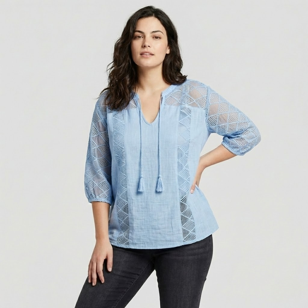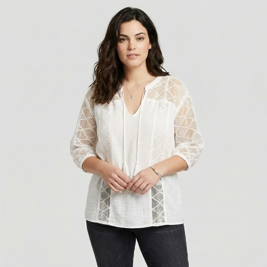 Túnica leve em algodão com rendado delicado | Corte solto | Frescura de verão