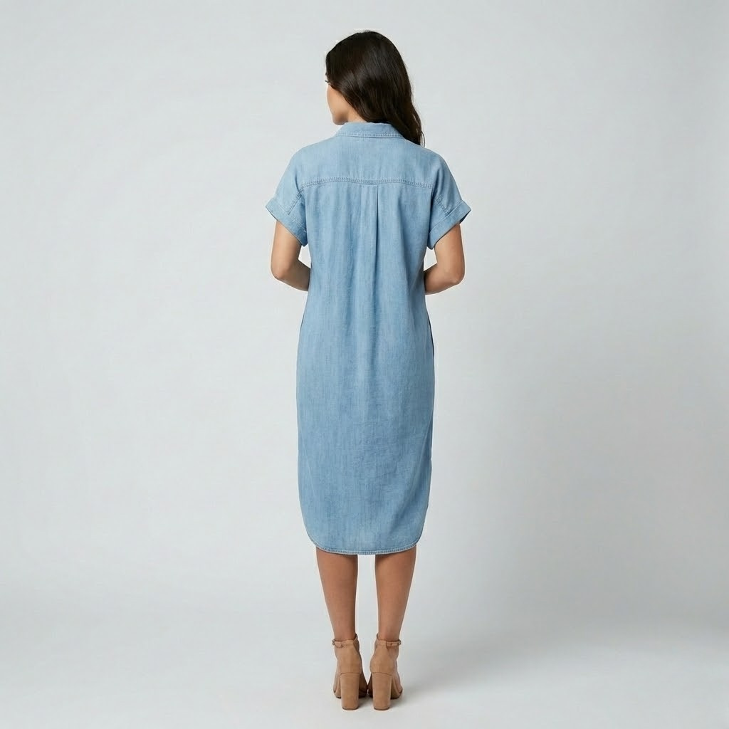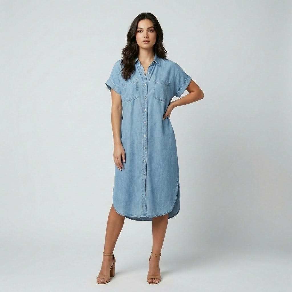 Vestido midi fluido em algodão suave | Corte solto | Conforto elegante para o dia-a-dia