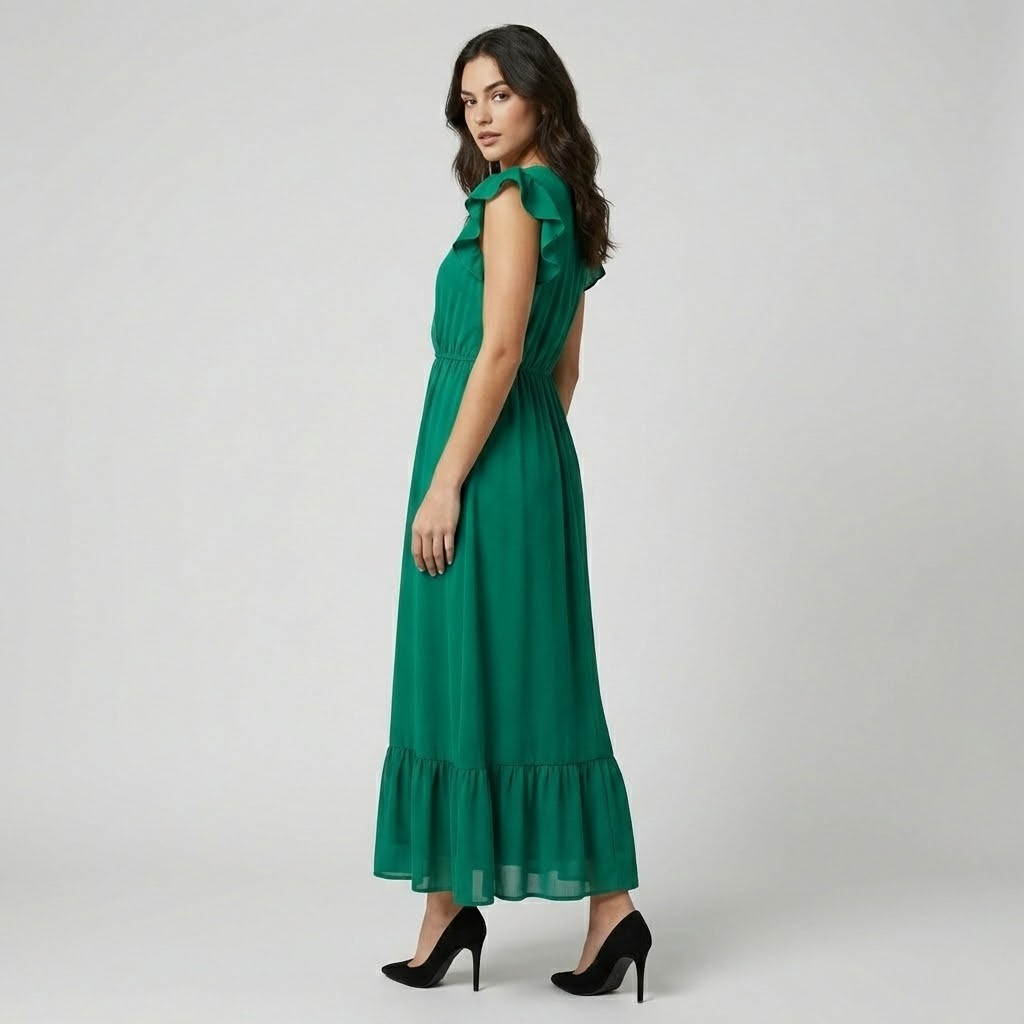 Vestido fluido em mistura de viscose | Cintura marcada | Elegância leve para dias luminosos