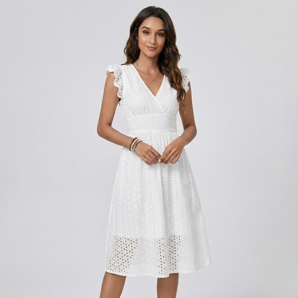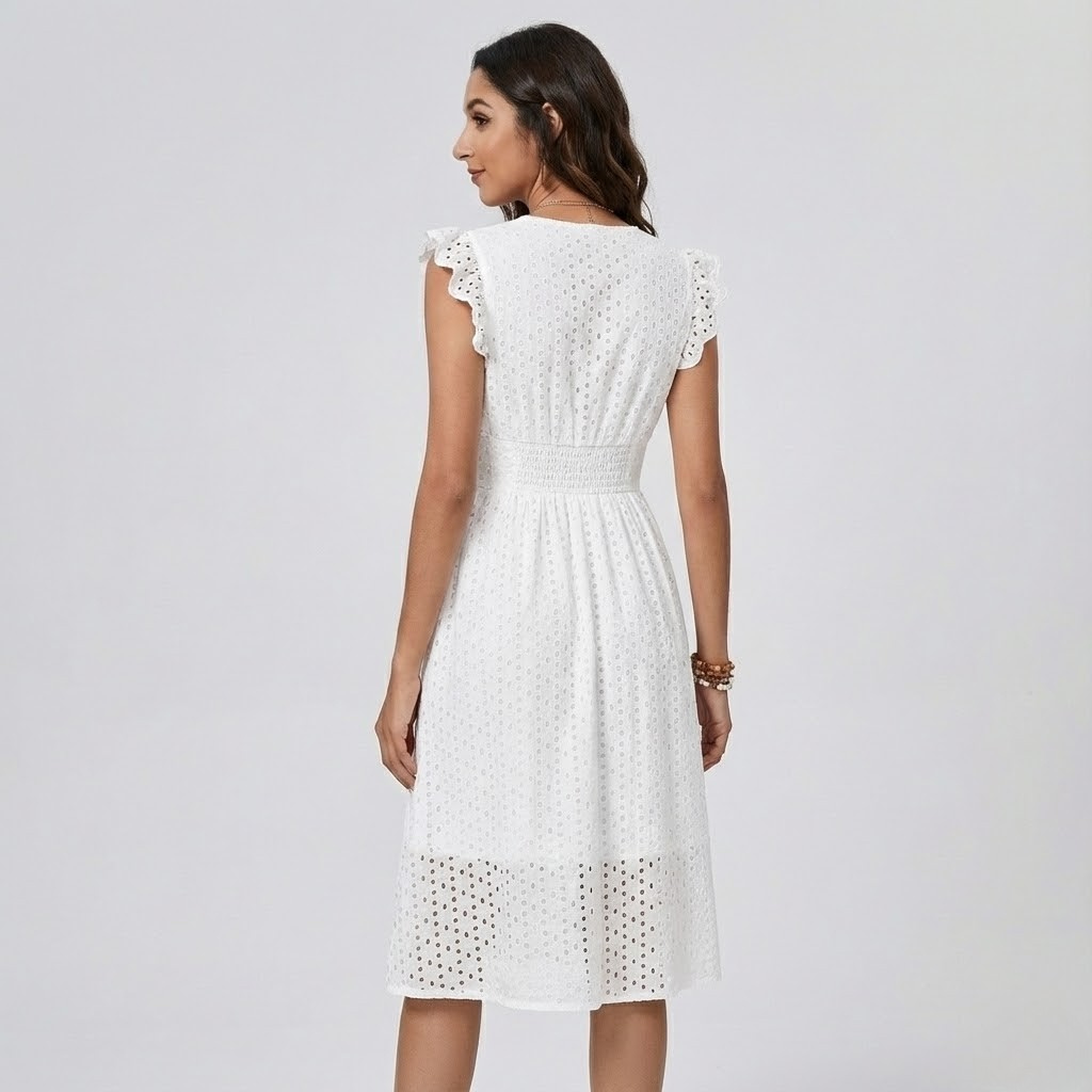 Vestido midi de verão em algodão bordado | Cintura definida | Leveza natural