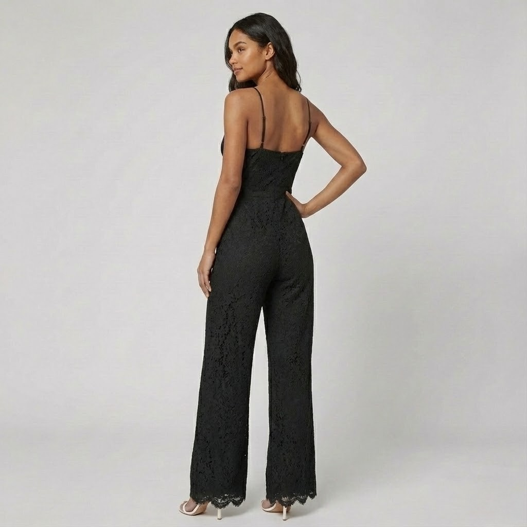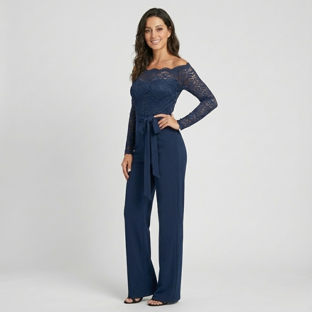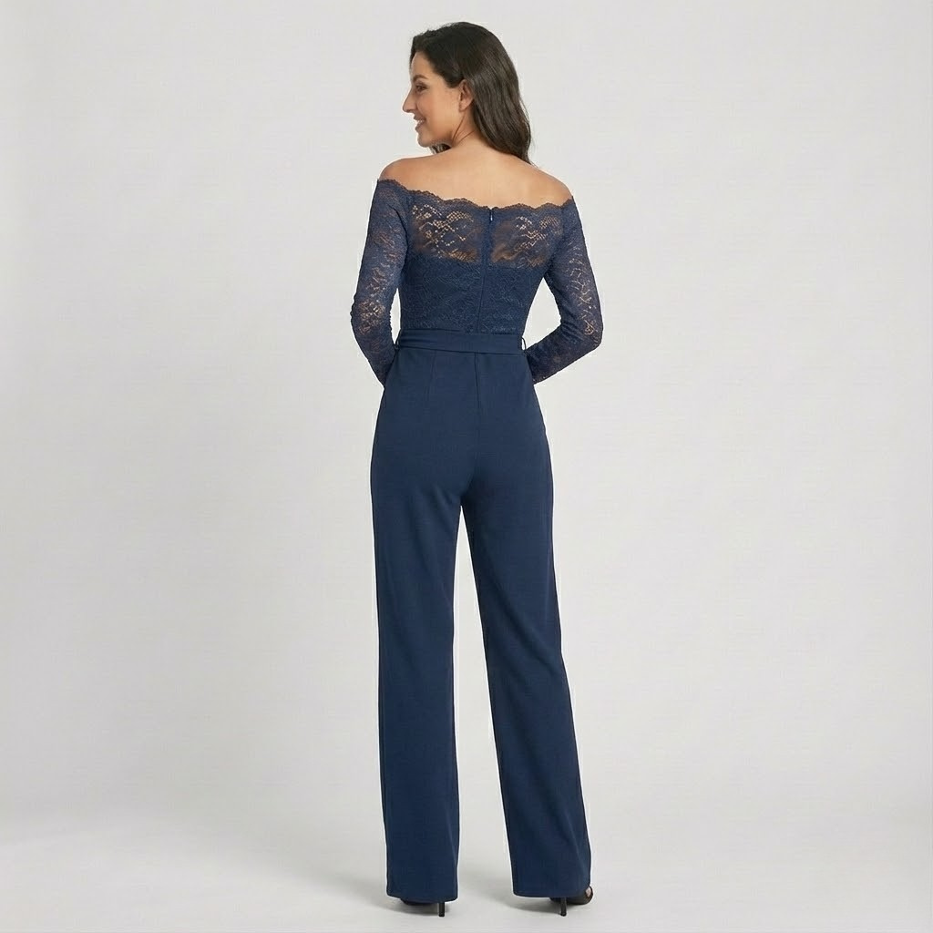 Macacão elegante com renda delicada | Ombro a ombro | Sofisticação moderna