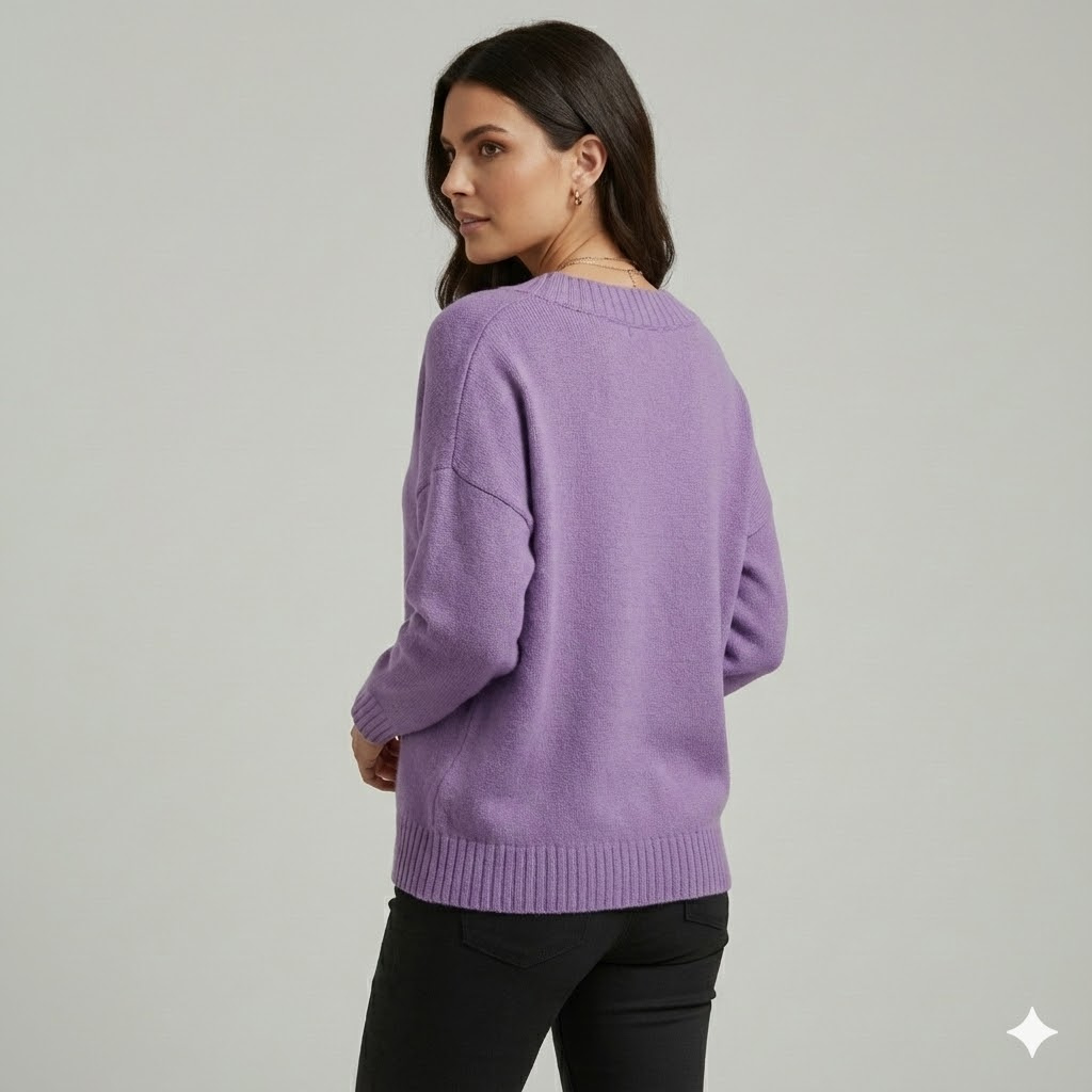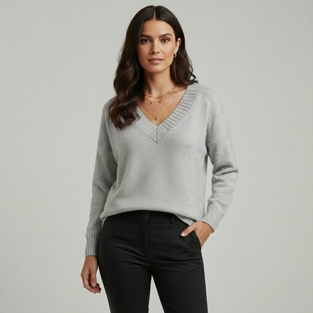 Camisola de malha elegante em mistura suave | Corte descontraído | Decote em V intemporal