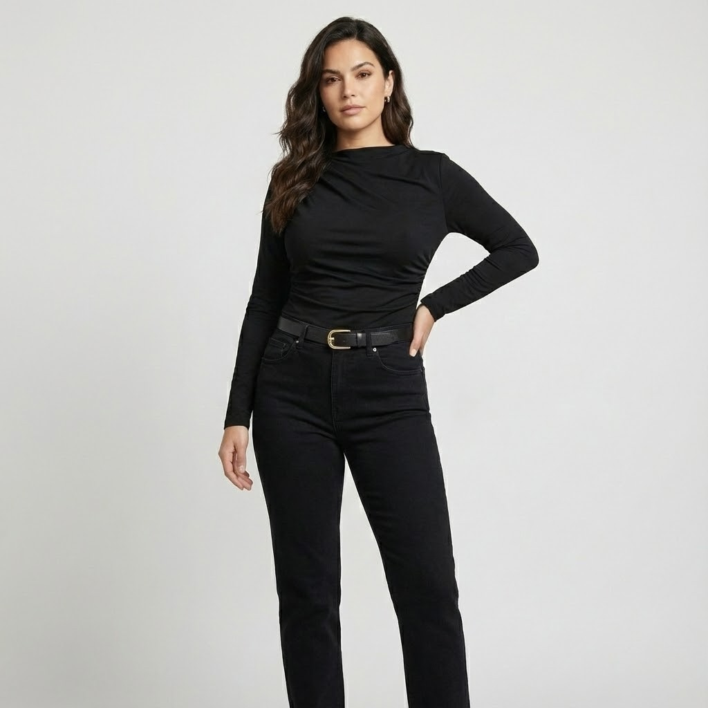 Top elegante em viscose fluida | Corte ajustado | Decote assimétrico drapeado