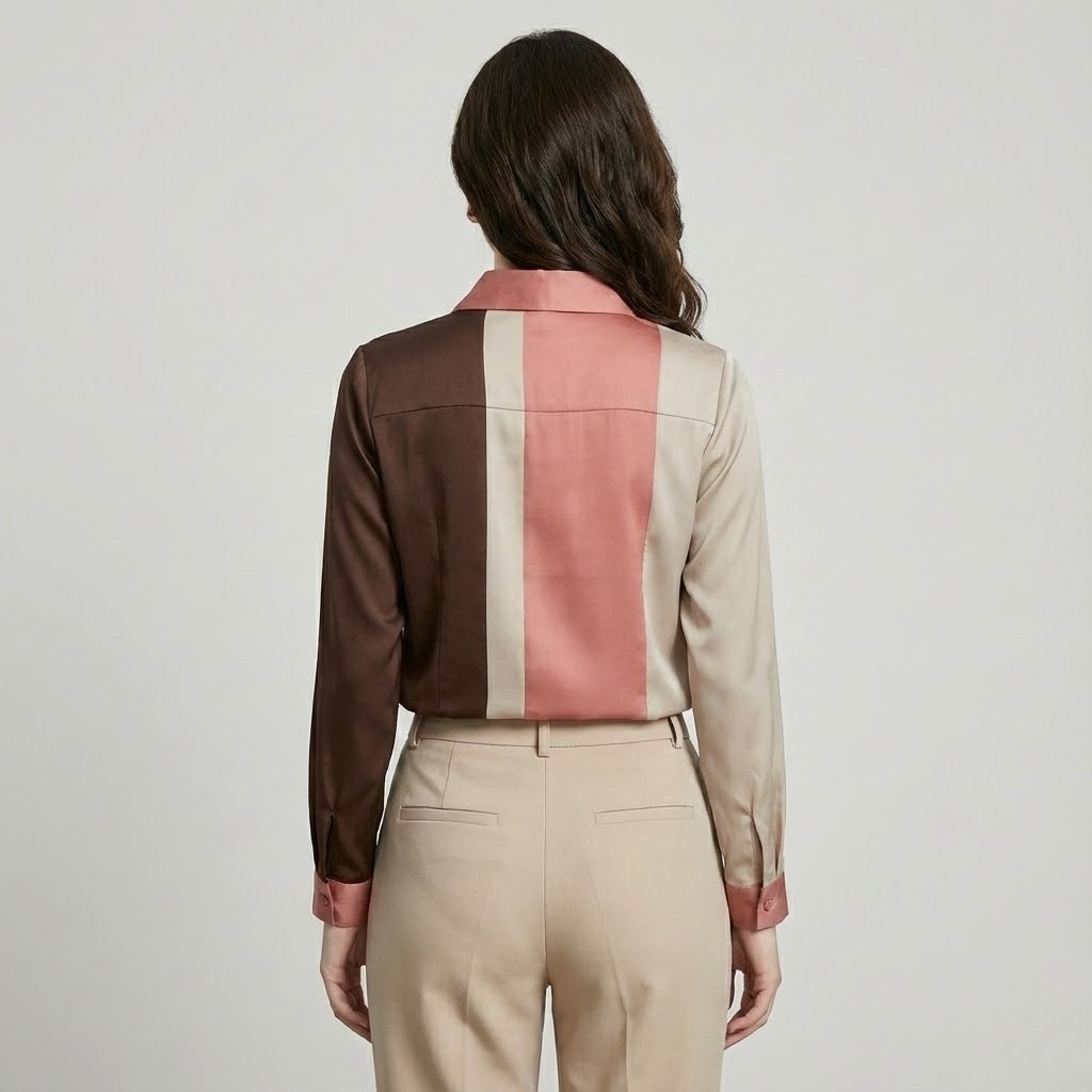 Blusa acetinada com patchwork elegante | Corte fluido | Estilo urbano sofisticado