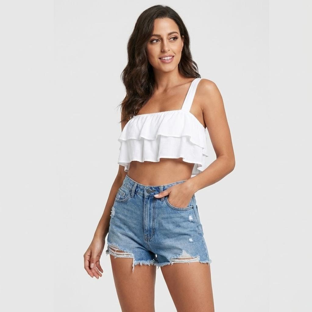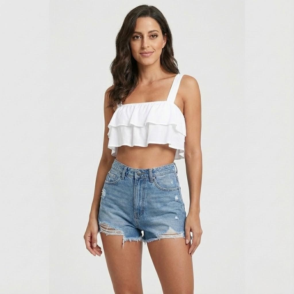 Calções de ganga de cintura subida | Corte ajustado | Estilo descontraído de verão