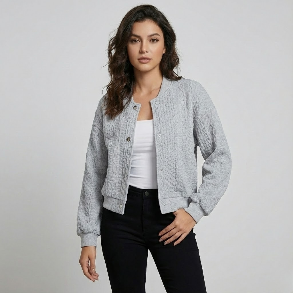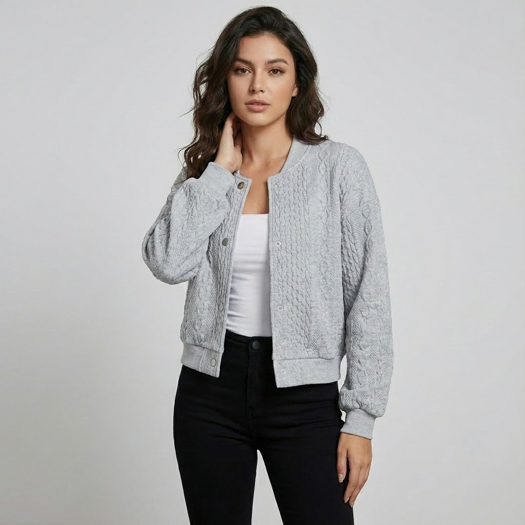 Casaco acolchoado com textura elegante | Corte curto | Estilo casual contemporâneo