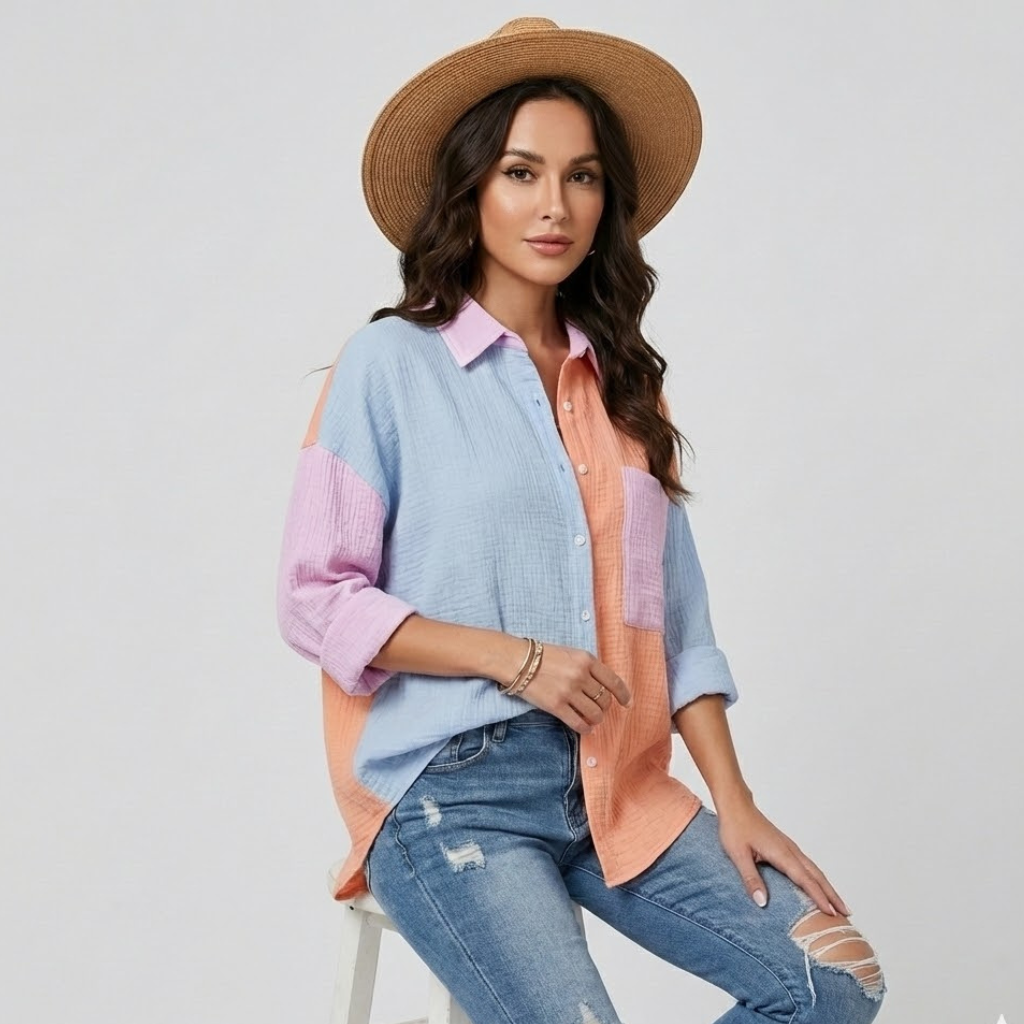 Blusa patchwork em mistura de algodão | Corte fluido | Estilo descontraído