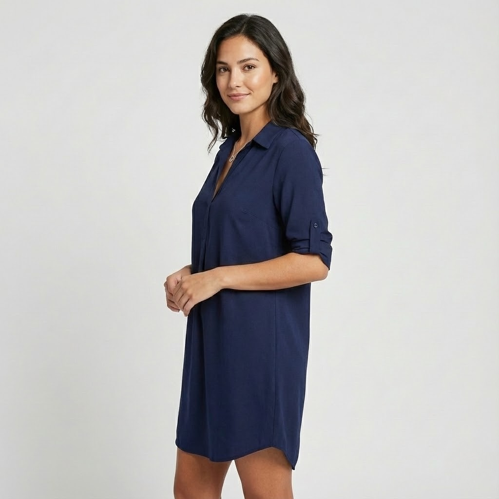 Vestido tipo blusa em tecido fluido | Corte solto | Elegância descontraída