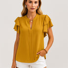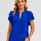 Blusa leve com mangas em camadas e decote em V