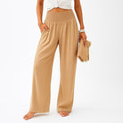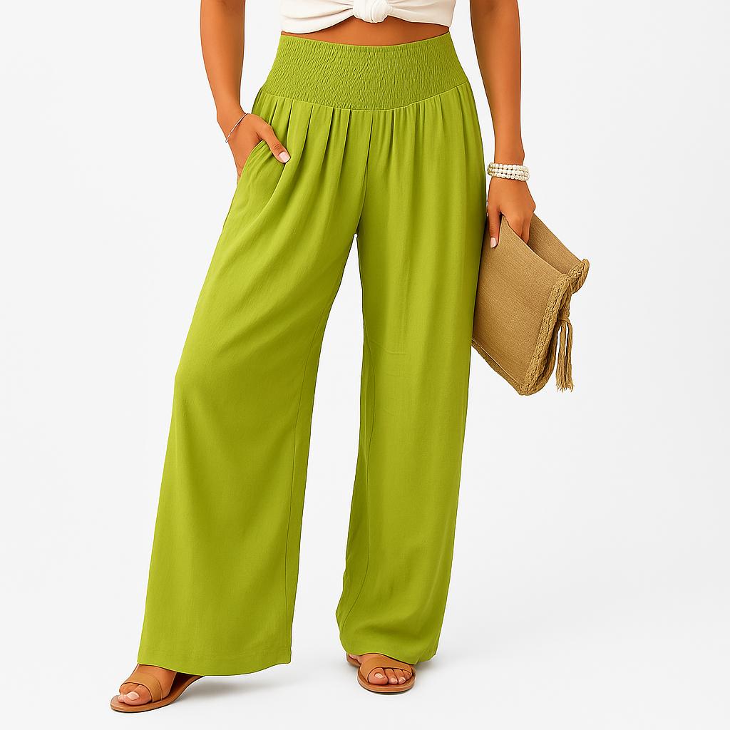 Calças largas em linho com cintura elástica