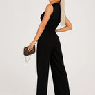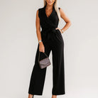 Macacão feminino elegante com laço e perna larga