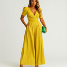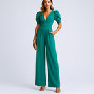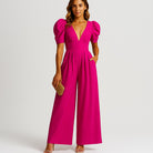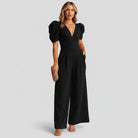 Macacão feminino longo com mangas bufantes e corte fluido