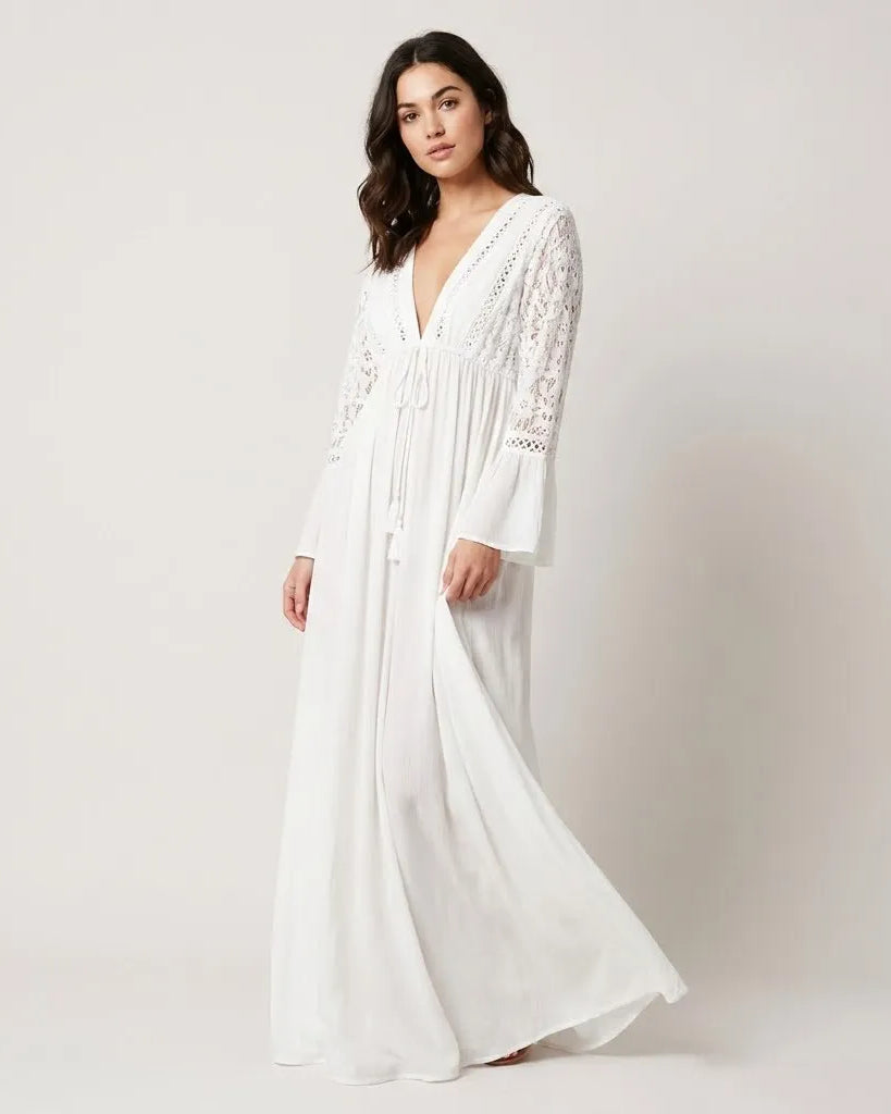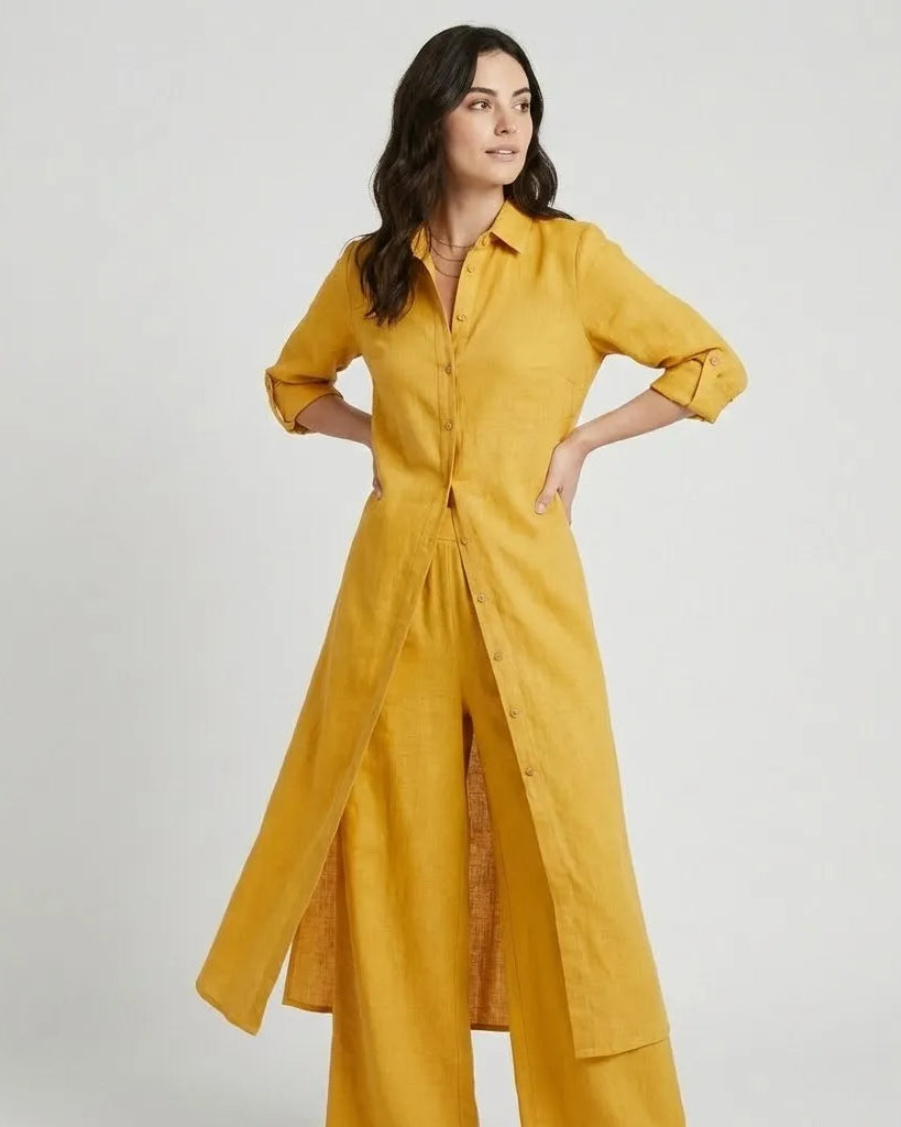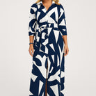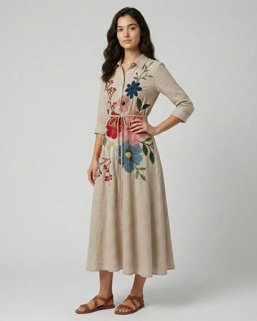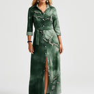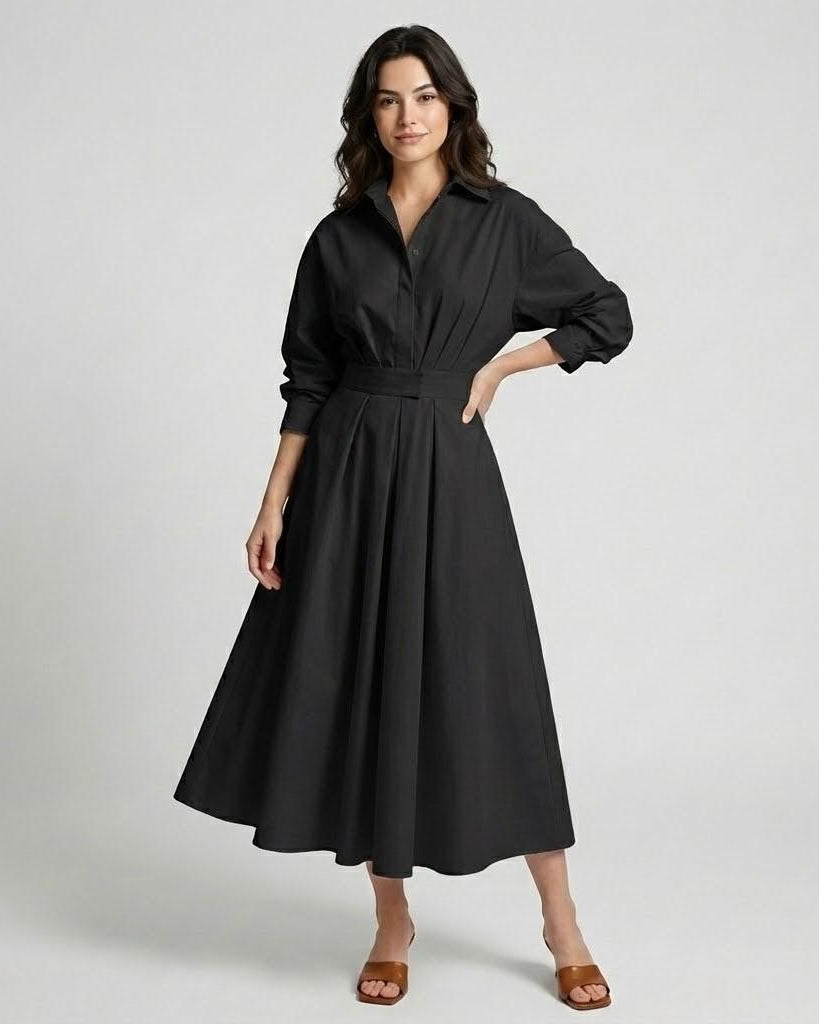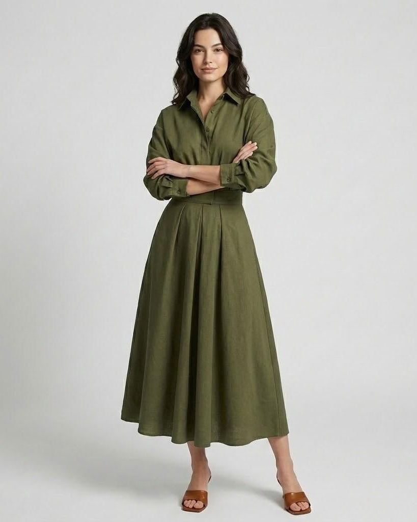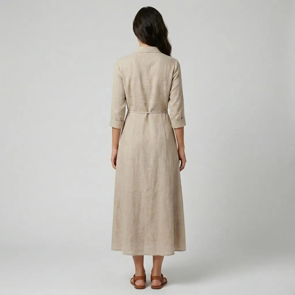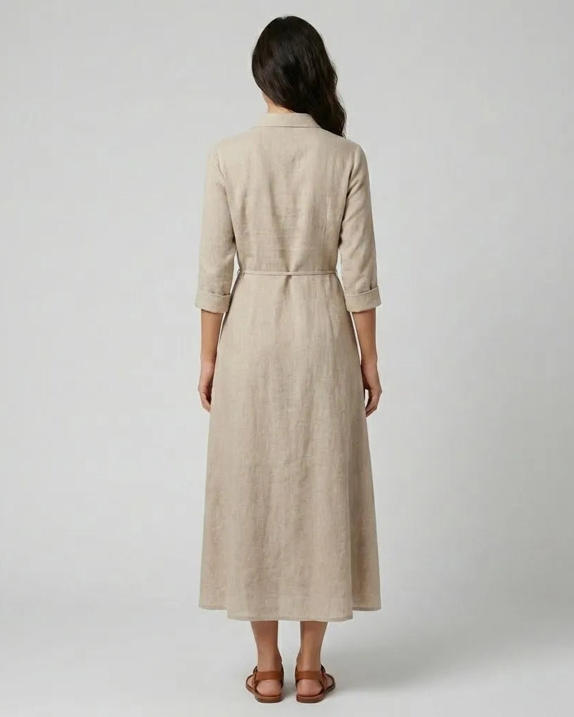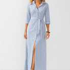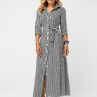 Vestido camiseiro comprido em riscas com cinto ajustável